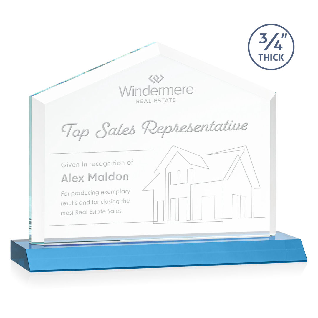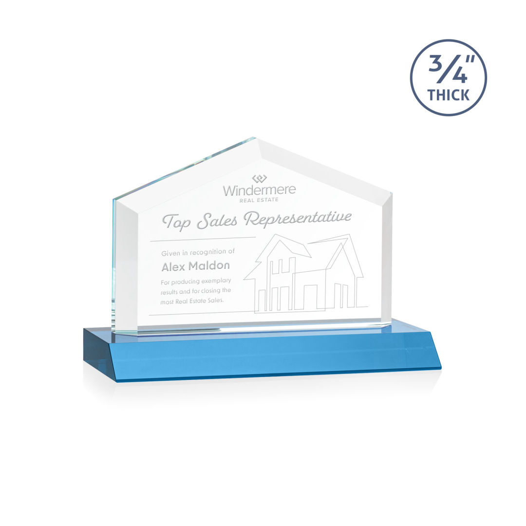 The striking Micasa award features a front beveled Starfire Crystal top and mounted on your choice of colored front mitered base. Perfect for realtors, brokerages, mortgage lenders or anyone looking to recognize excellence within the real estate industry. Second Position Etch & Colorfill Optional. 7.0″ W x 4.75″ H
