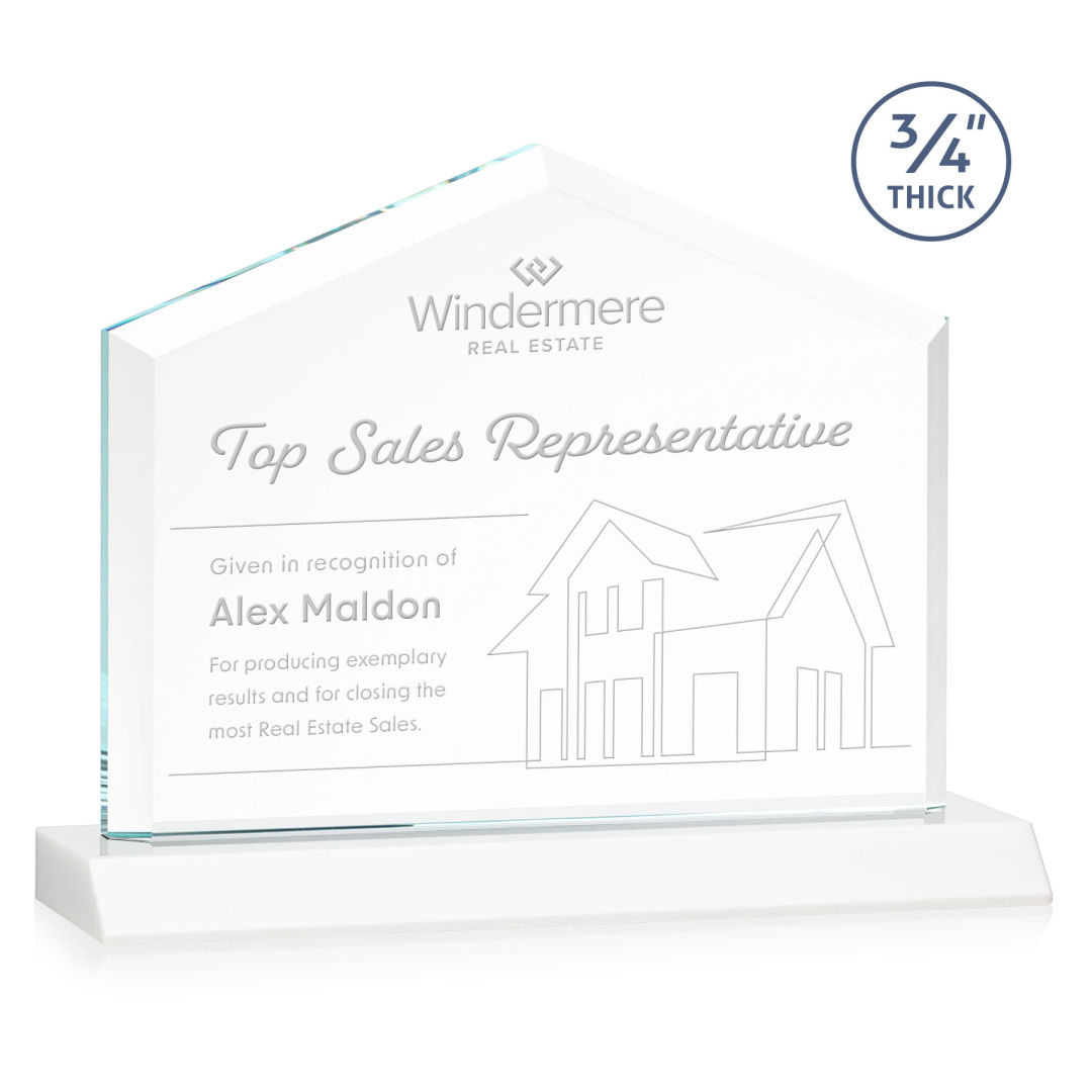 The striking Micasa award features a front beveled Starfire Crystal top and mounted on your choice of colored front mitered base. Perfect for realtors, brokerages, mortgage lenders or anyone looking to recognize excellence within the real estate industry. Second Position Etch & Colorfill Optional. 7.0″ W x 4.75″ H