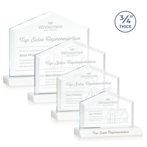 The striking Micasa award features a front beveled Starfire Crystal top and mounted on your choice of colored front mitered base. Perfect for realtors, brokerages, mortgage lenders or anyone looking to recognize excellence within the real estate industry. Second Position Etch & Colorfill Optional. 7.0″ W x 4.75″ H