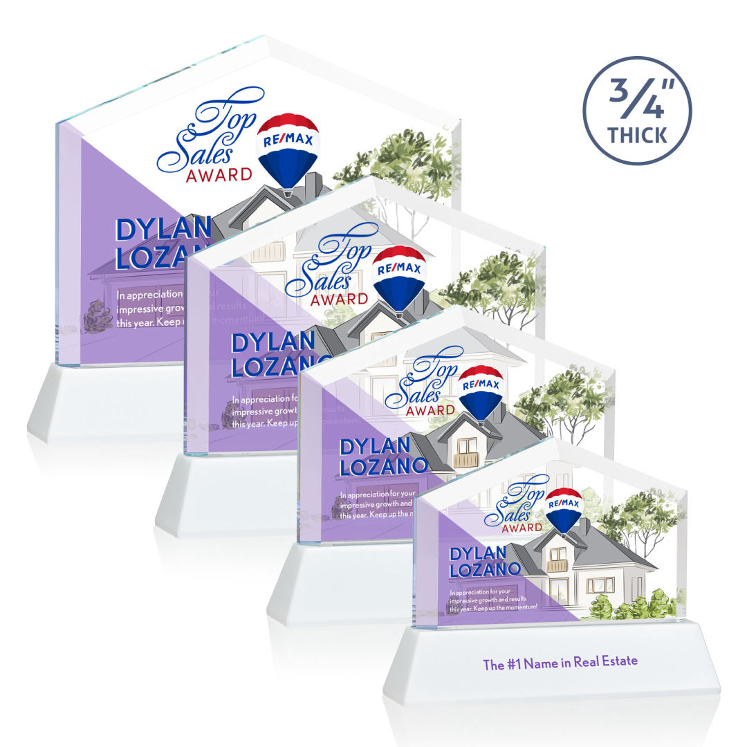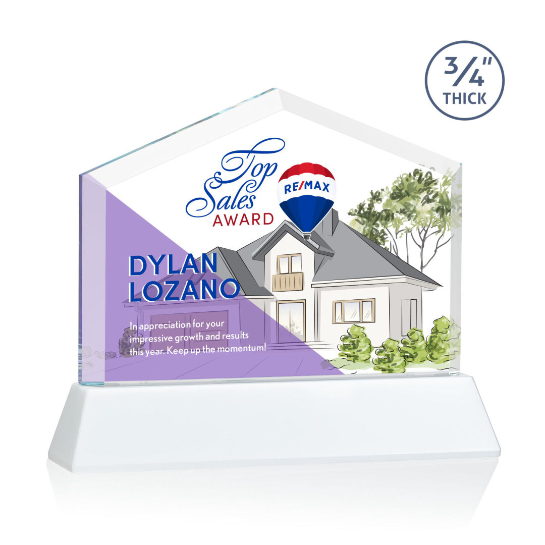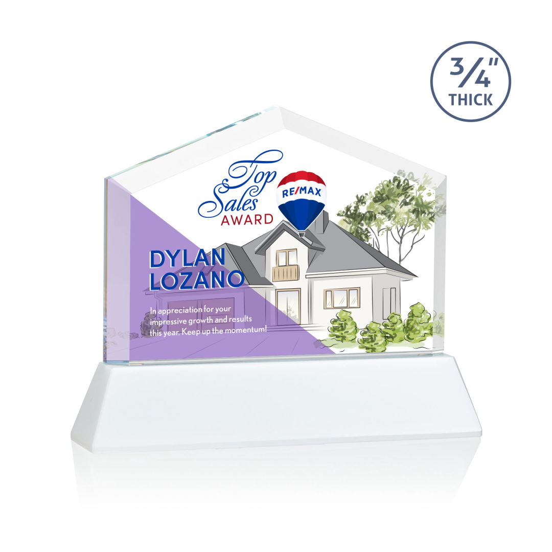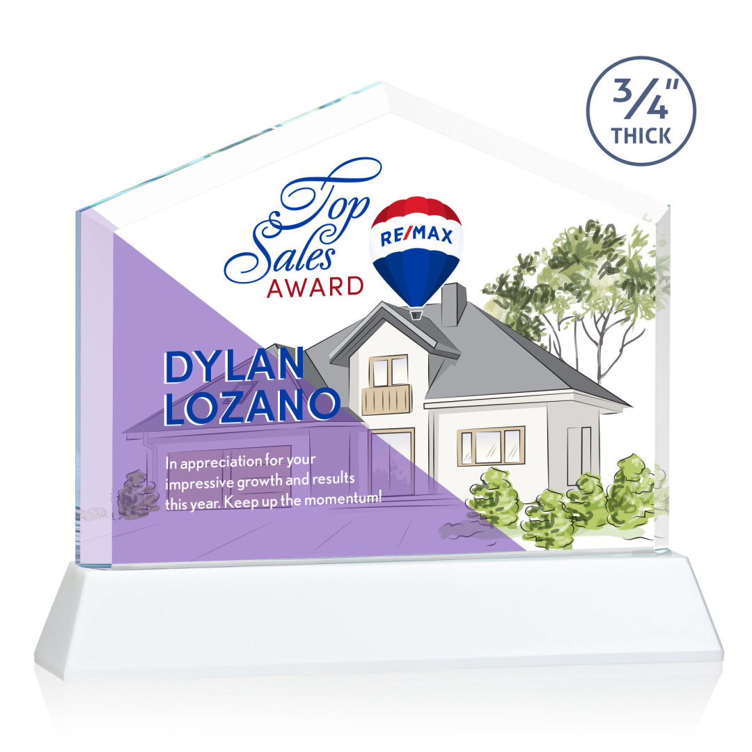 The striking Micasa on Newhaven award features a front beveled Starfire Crystal top that’s mounted on a tall tapered Optical Crystal base in your choice of vibrant and distinct colors. Perfect for realtors, brokerages, mortgage lenders or anyone looking to recognize excellence within the real estate industry. Second Position Imprint Optional. 7.0″ W x 7.5″ H