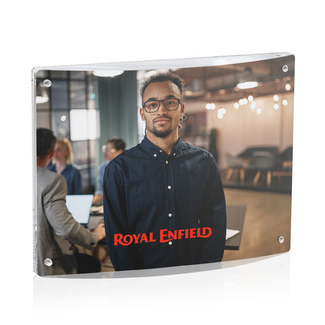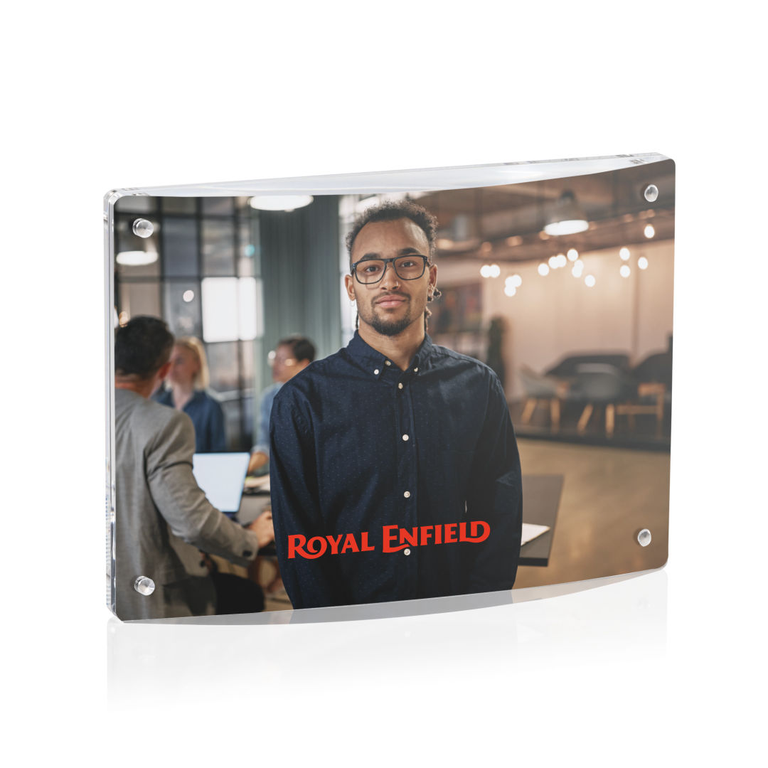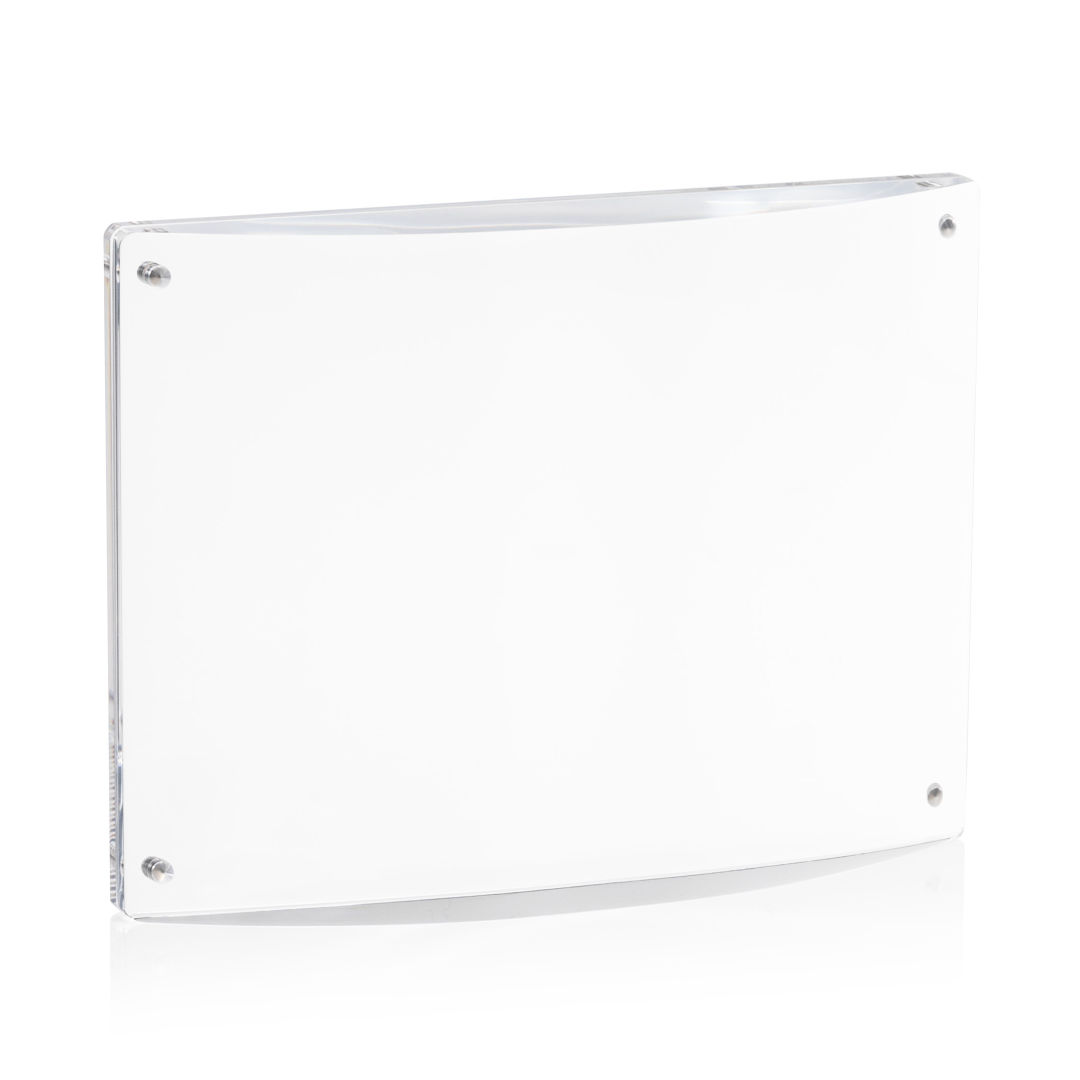 Experience elegance with the modern Middlebury Frame that encases your photograph between two magnetized panels of acrylic. Features a curved front that will compliment any mantle or desk. An excellent gifting option for presenting your treasured memories, all the while highlighting your brand or conveying a special message. 6.0″ W x 4.0″ H x 1.125″ D