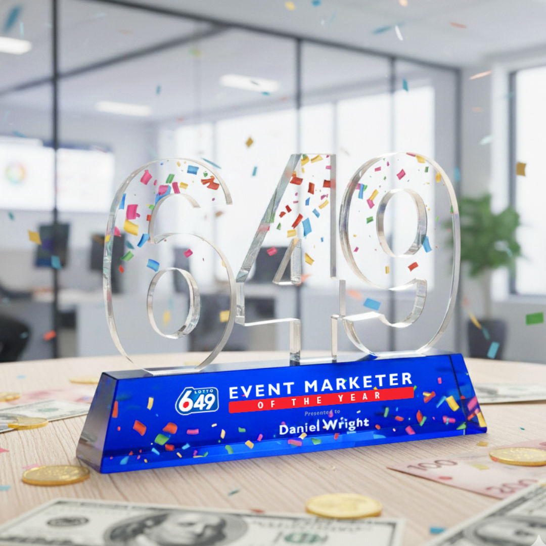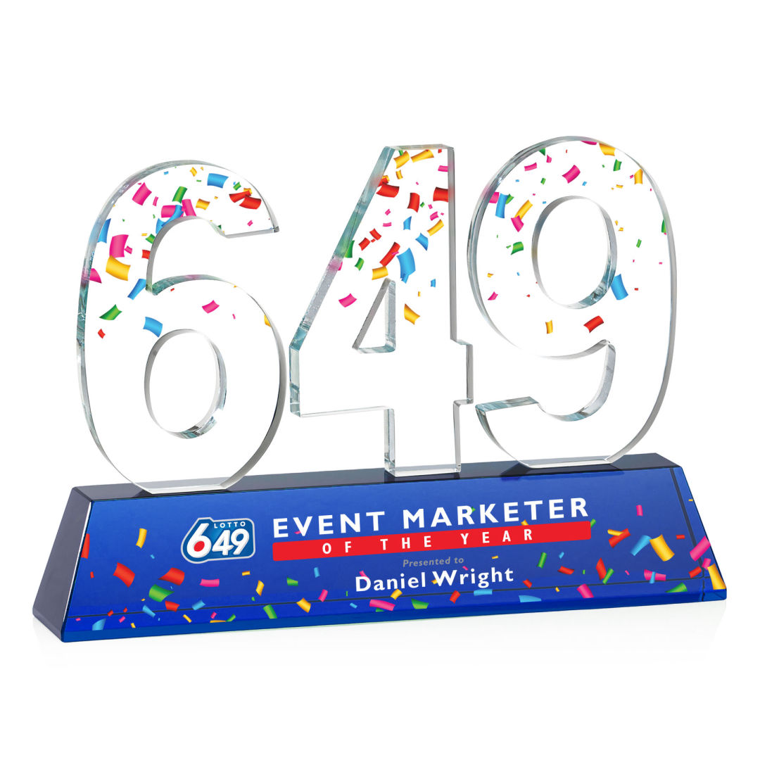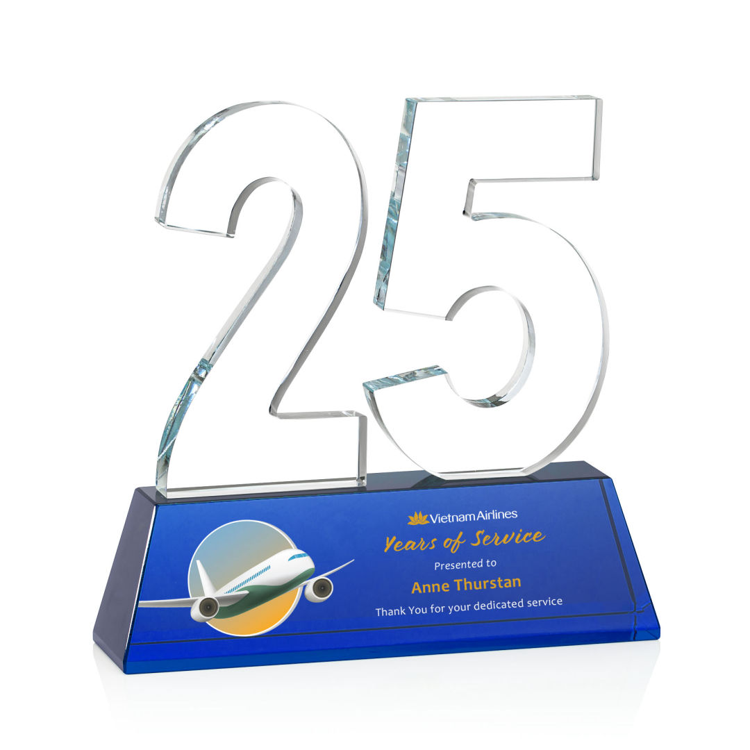 Recognize a monumental achievement with our exquisite Optical Crystal Milestone VividPrint™ award. These impressive awards are perfect for recognizing a personal or corporate achievement or a landmark event. A great way to honor a significant moment. Available with single, double or triple digits, these awards can recognize Milestones #0-999. Available with Deep Etching or full-color VividPrint™. Second, Third, and Fourth position imprint on numbers is optional. 5.0″ W x 8.5″ H x 1.5″ D
