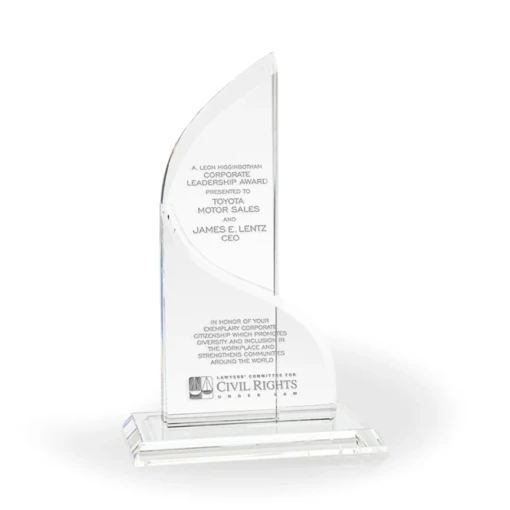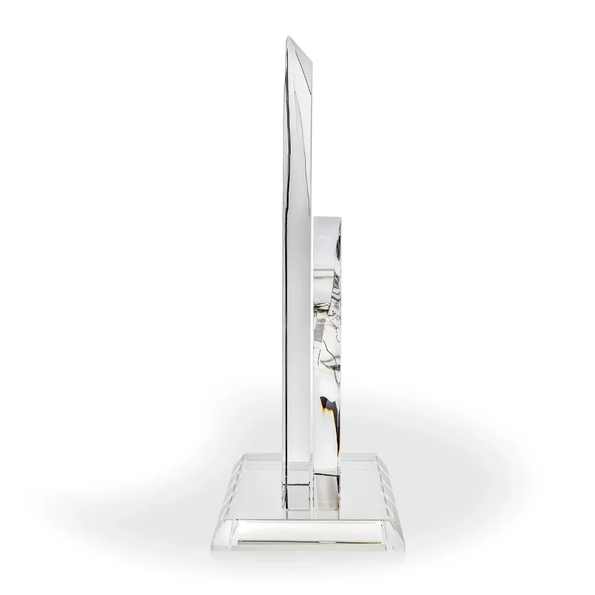 The beautiful Millennium Crystal Award is a stunning desktop piece that incorporates geometric design with a classic, sweeping and graceful look. Perfect for awarding top management or high achievers. This stately crystal award stands at 13.75″ tall. 13 3/4″ H x 8 1/2″ W x 3″ D