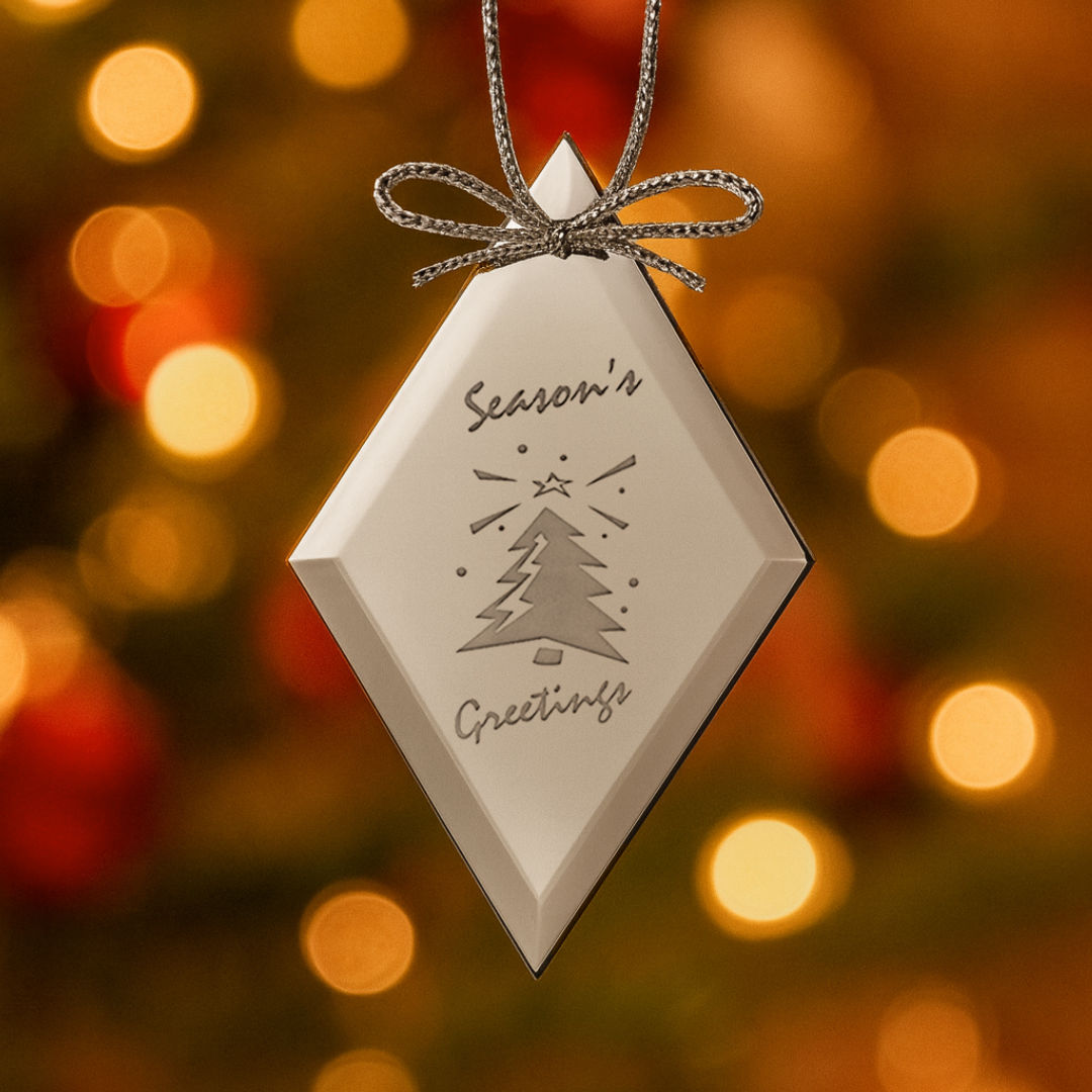 Ideal on your Xmas Tree. Hang in a window as a Sun Catcher. 4 distinctive shapes. Silver ribbon included. 3.5″ W x 4.625″ H