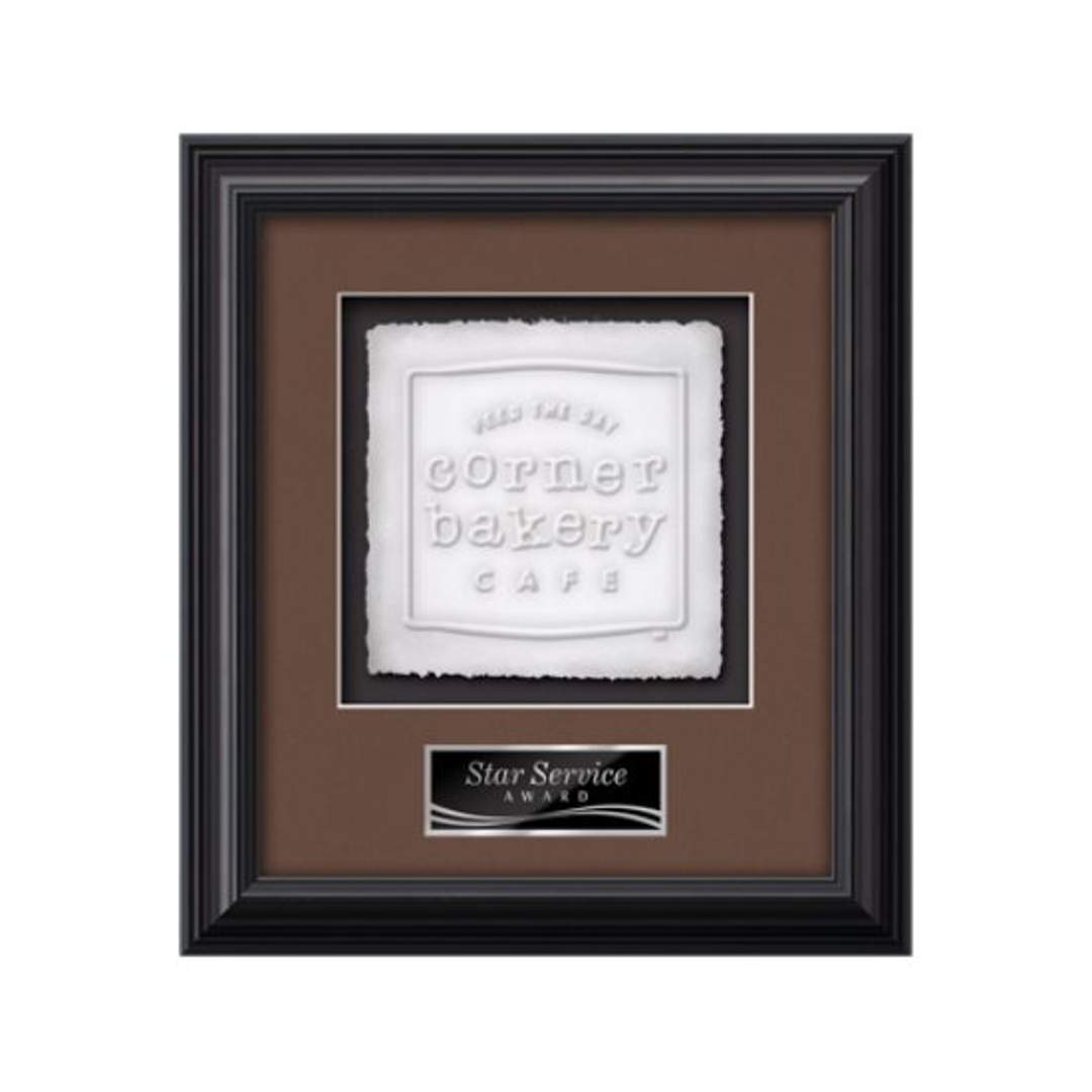 The Monarch Cast Paper Framed Award capitalizes on the contrast between the organic, delicate nature of cast paper art and the stunning permanent gallery presentation for achievement recognition. This framed work of art is surrounded by our exquisite Monarch molding, your choice of 2 standard mattes and a personalization plate to give your accomplishment a remarkable, dramatic display. 11.25″ W x 11.25″ H