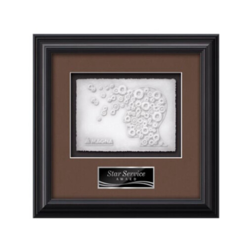 The Monarch Cast Paper Framed Award capitalizes on the contrast between the organic, delicate nature of cast paper art and the stunning permanent gallery presentation for achievement recognition. This framed work of art is surrounded by our exquisite Monarch molding, your choice of 2 standard mattes and a personalization plate to give your accomplishment a remarkable, dramatic display. 11.25″ W x 11.25″ H