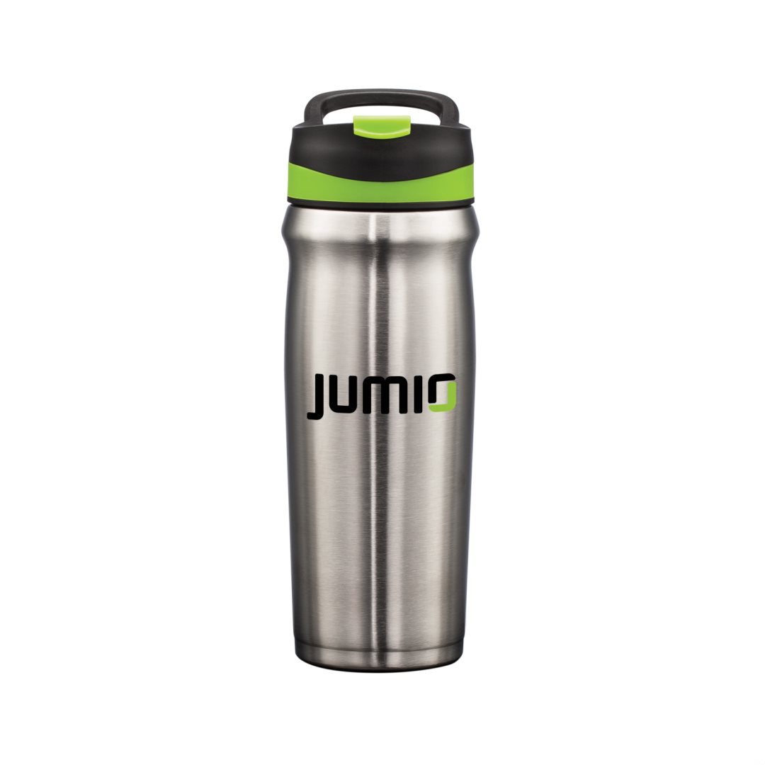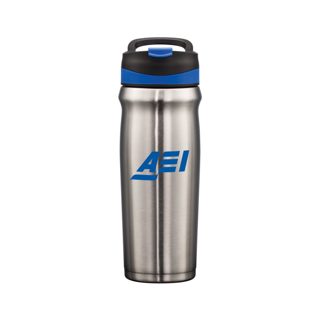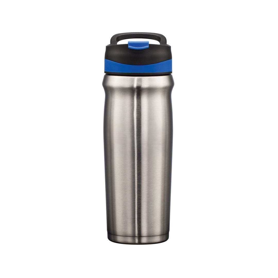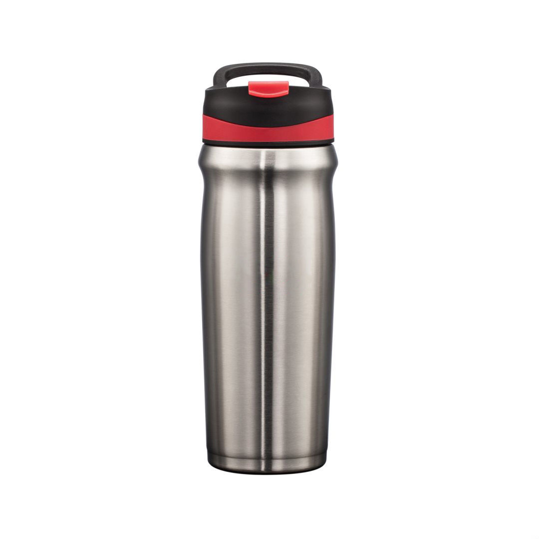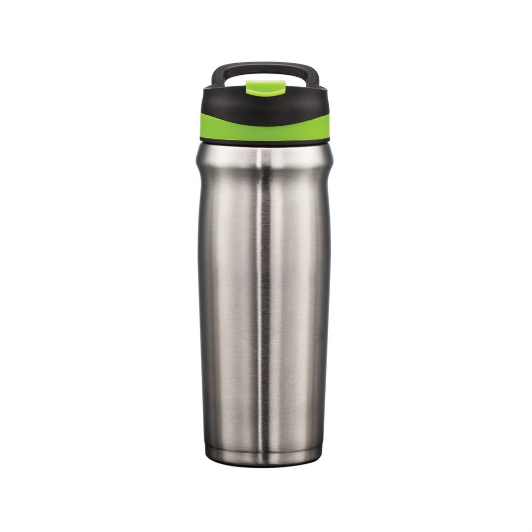 Superior performance double-wall construction locks in temperature- Durable stainless steel inner and outer vacuum walls- Stays comfortable to the touch when filled with hot or cold liquids – Sleek body design with sturdy 3-finger carry handle – Spill-proof, flip drink lid with extra secure screw top cap- Contoured mouth cavity for easier sipping – Scratch-resistant, non-slip, protective base pad for all surfaces. 4.25″ W x 9.0″ H