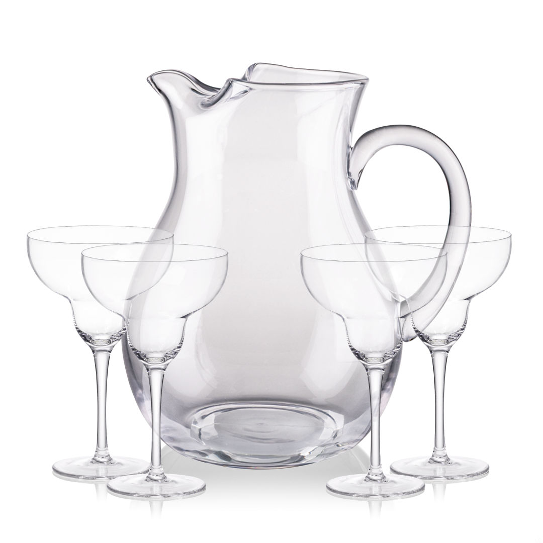 The Montclair Pitcher & Cocktail Glasses Set brings refined simplicity to any occasion, featuring a gracefully curved glass pitcher paired with 2 or 4 matching cocktail glasses. Designed for effortless entertaining, the pitcher’s wide spout and sturdy handle make pouring smooth and easy, while the glasses offer a balanced shape ideal for cocktails or refreshing beverages. Perfect as a gift or for elevating your own table, this set blends timeless style with everyday functionality.