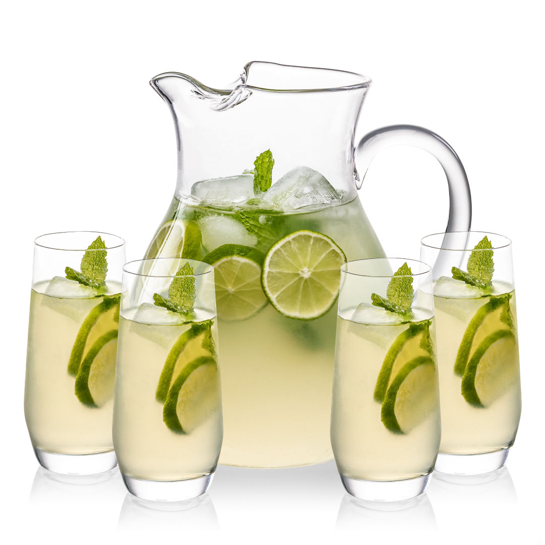 The Montclair Pitcher & Beverage Glasses Set is designed for effortless serving and timeless appeal. Featuring a gracefully curved glass pitcher and 2 or 4 versatile beverage glasses, it’s perfect for water, iced tea, lemonade, or cocktails. A stylish and practical choice, this set makes an elegant addition to any home or a thoughtful gift for any occasion. Various other glasses are available.