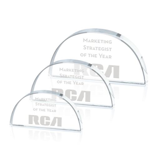 The 6″ wide Montrose is a freestanding arc of flawless optical crystal, a simple, elegant piece designed to focus attention on the artwork. Perfect for desktop or shelf. Also available in 8″ and 10″ sizes. 6.0″ W x 3.0″ H