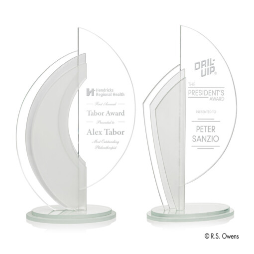 The Nautilus is known for the beauty of it’s multi-chambered shell. Like their namesake, these awards feature graceful proportions assembled with symmetry and beauty. Each award is constructed from six optical crystal parts with rich interplay between frosted and clear crystal. 6.25″ W x 12.0″ H