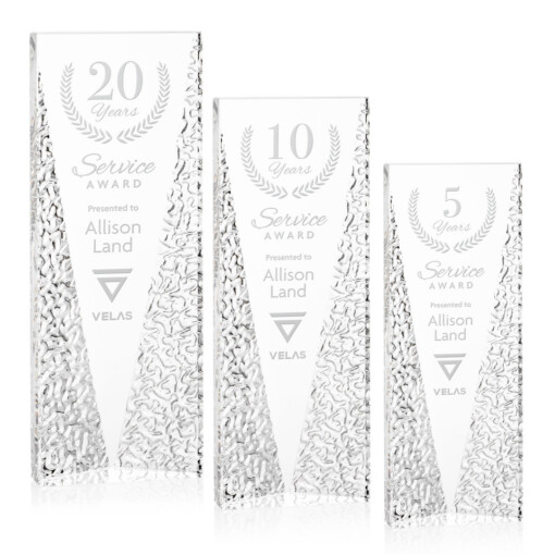 The Optical Crystal Navarro Award is a freestanding award that features stunning textured sides, creating a striking visual appeal. Ideal for recognizing Years of Service or celebrating any special occasion, it adds a sophisticated touch to any award presentation. 2.75″ W x 7.75″ H x 1.5″ D