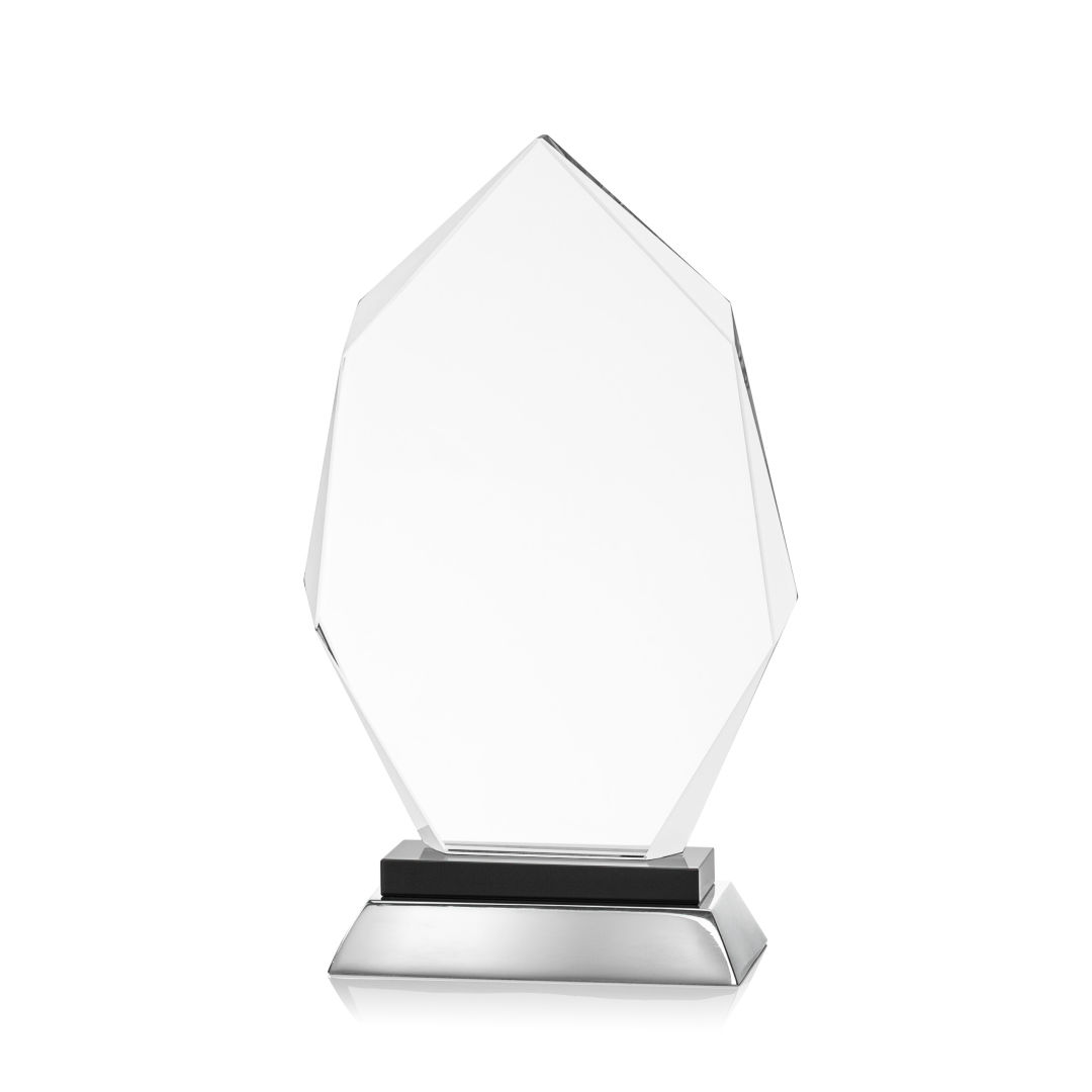 The interchanging facets on the Nebraska Award reflect light and create a sparkling frame for your incredible achievement. Mounted on a solid ebony crystal and polished aluminum double base. 4.75″ W x 10.5″ H