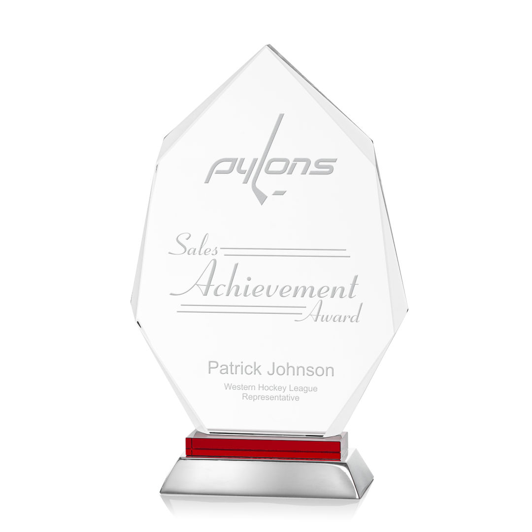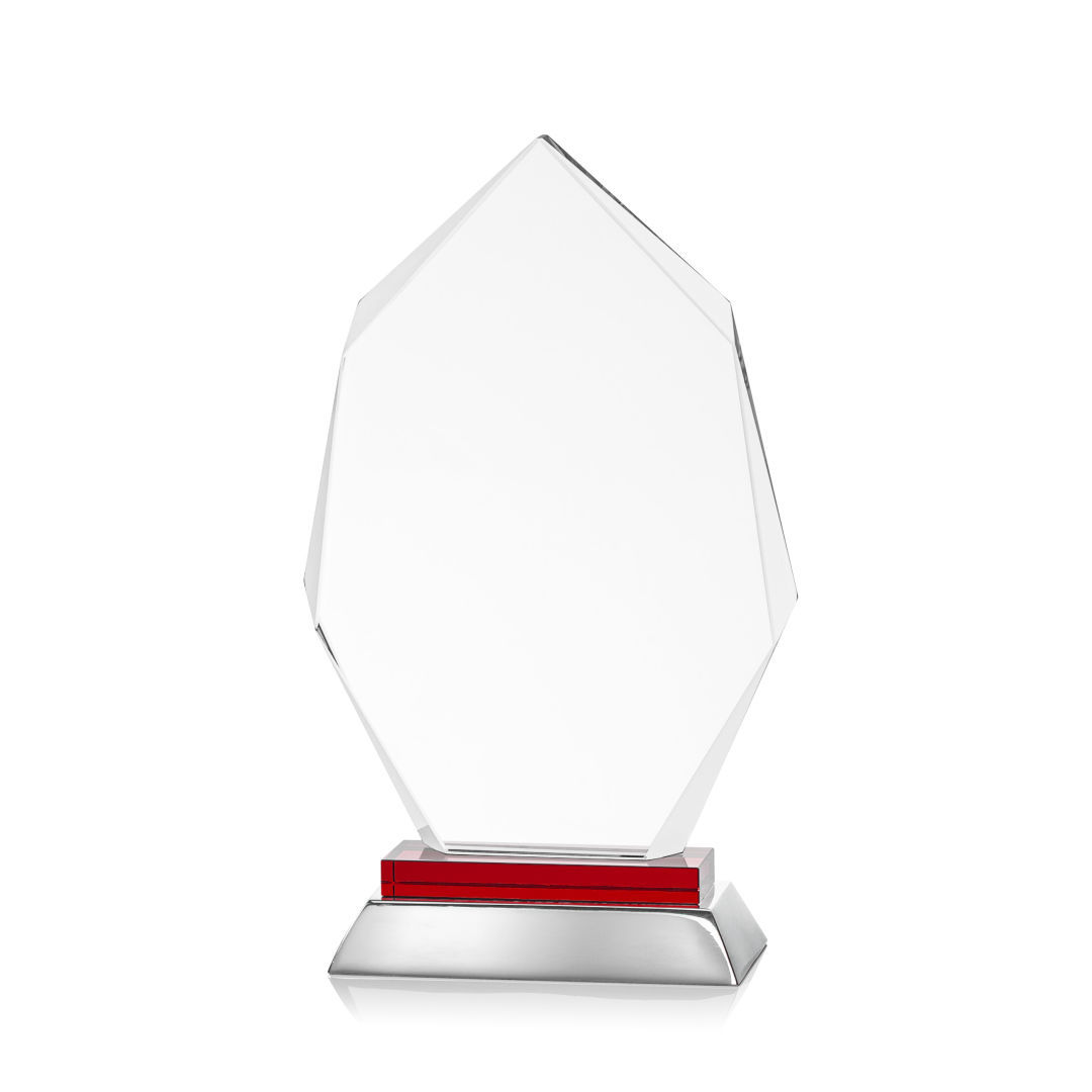 The interchanging facets on the Nebraska Award reflect light and create a sparkling frame for your incredible achievement. Mounted on a ruby red crystal and polished aluminum double base. 4.75″ W x 10.5″ H