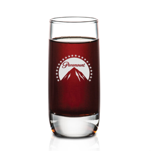 Elegantly constructed shot glass with thick sham. The deep base helps stabilize the glass and it’s visually elevates it. The sparkling glass is an excellent canvas for a deep etch logo.