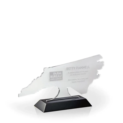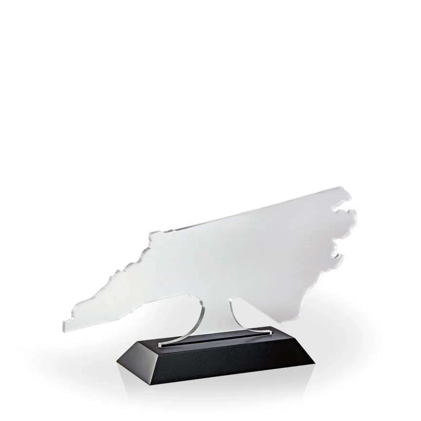 An attractive and affordable award option, our acrylic cutout awards are made in the USA with 1/4″ clear acrylic and a black, beveled wood base. These budget-friendly awards require minor assembly. The acrylic pop-in and wood base are packaged together, un-attached, in a slim-line white tri-fold box. 4.25″ H x 8″ W x 2″ D