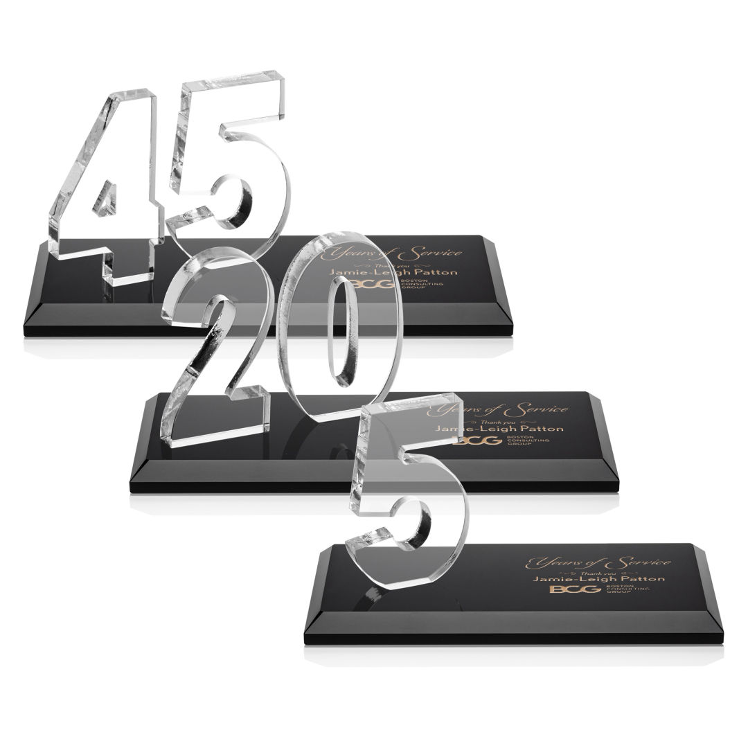 Celebrate employee loyalty with the Northam Anniversary Awards. Featuring beautifully polished Starfire Crystal in 5 year increments to recognize years of service from 5 to 50 and everything in between. Mounted on your choice of clear or colored Optical Crystal base. Honor your long tenured and dedicated staff with these magnificent awards. 6.0″ W x 3.5″ H x 3.0″ D