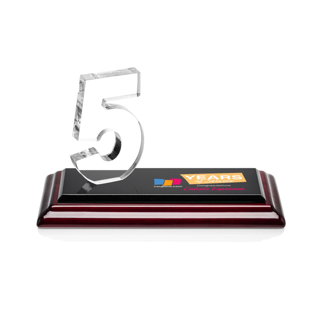 Celebrate employee loyalty with the Northam Anniversary Awards. Featuring beautifully polished Starfire Crystal in 5 year increments to recognize years of service from 5 to 50 and everything in between. Mounted on your choice of clear or colored Optical Crystal base. Honor your long tenured and dedicated staff with these magnificent awards. 6.0″ W x 3.5″ H x 3.0″ D