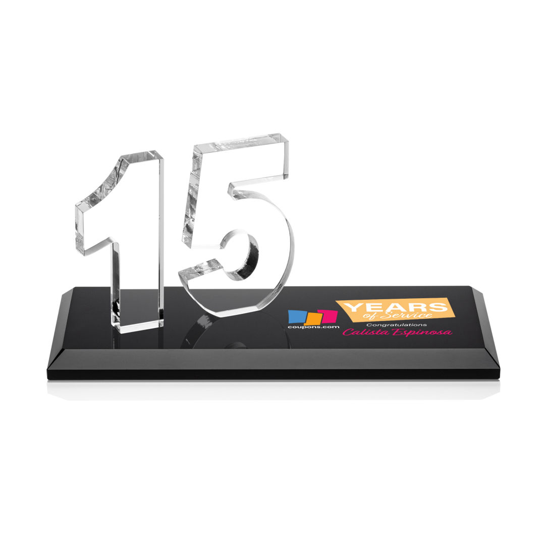 Celebrate employee loyalty with the Northam Anniversary Awards. Featuring beautifully polished Starfire Crystal in 5 year increments to recognize years of service from 5 to 50 and everything in between. Mounted on your choice of clear or colored Optical Crystal base. Honor your long tenured and dedicated staff with these magnificent awards. 6.0″ W x 3.5″ H x 3.0″ D