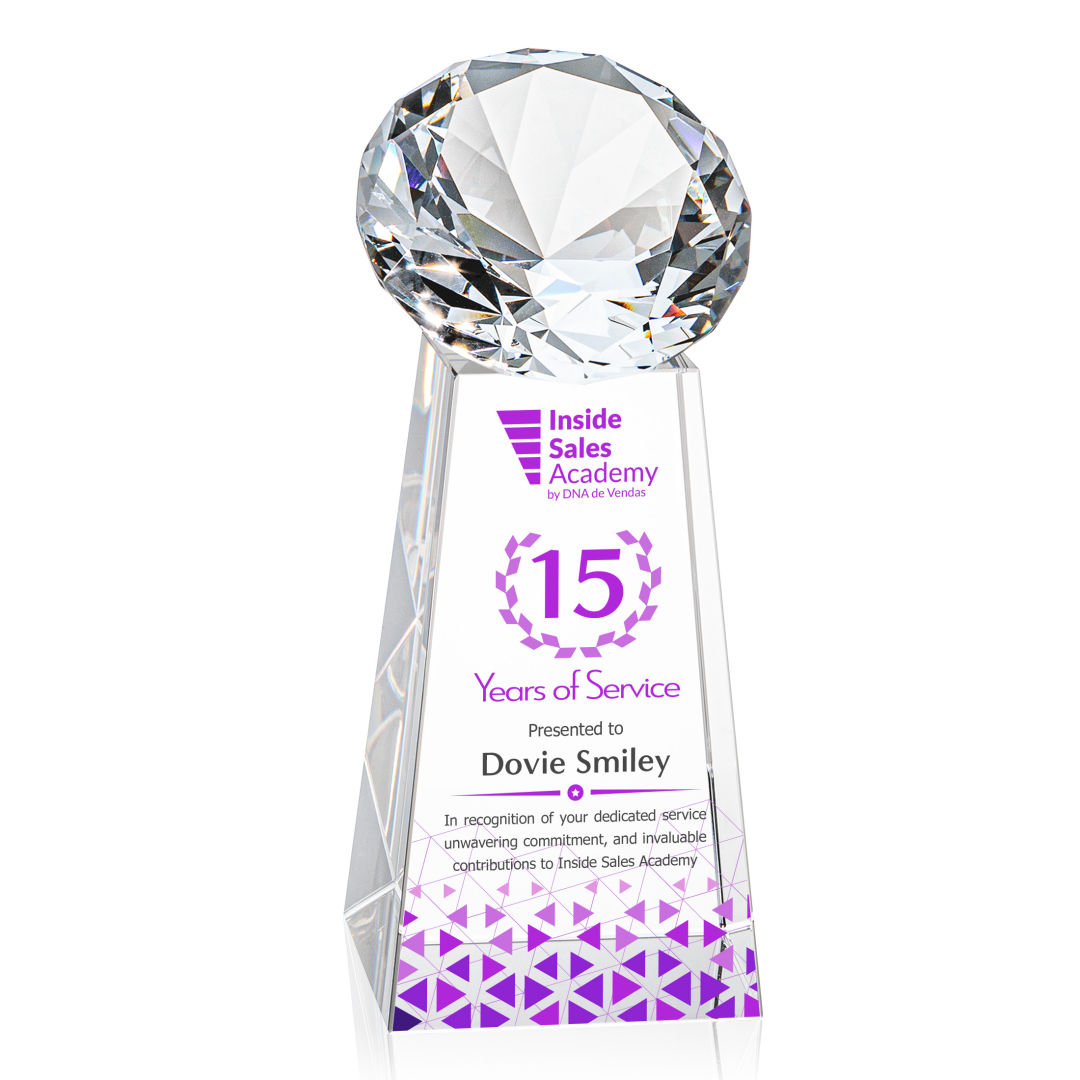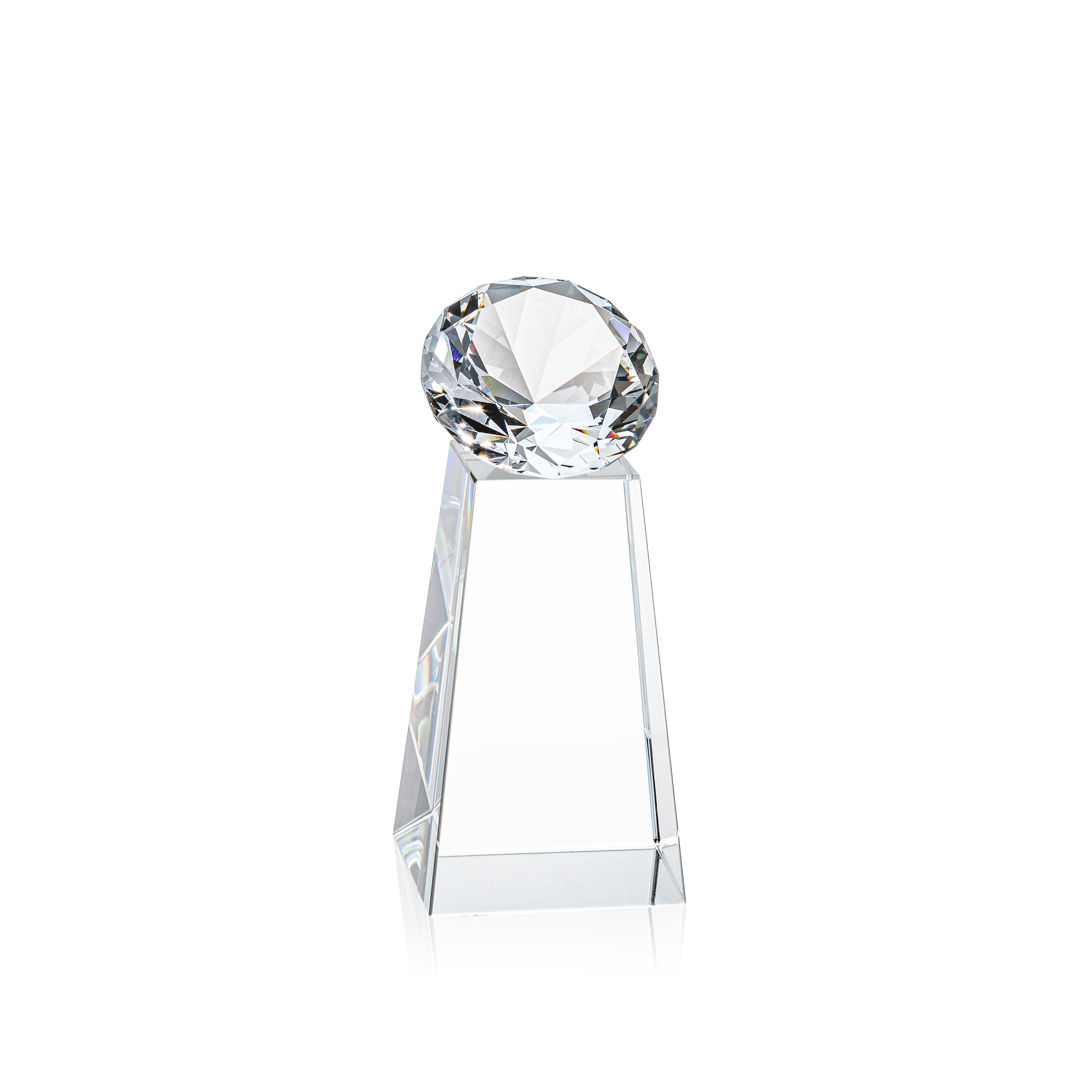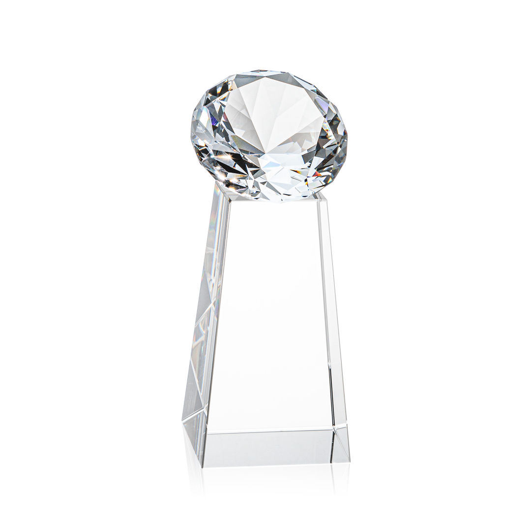 The statuesque and sparkling Optical Crystal Novita VividPrint™ Award tapers up from its tall squared base in triumph to present its stunning mounted gemstone. Available in beautiful shades of ruby, sapphire, emerald, amber, and clear. 2.5″ W x 6.0″ H x 2.5″ D