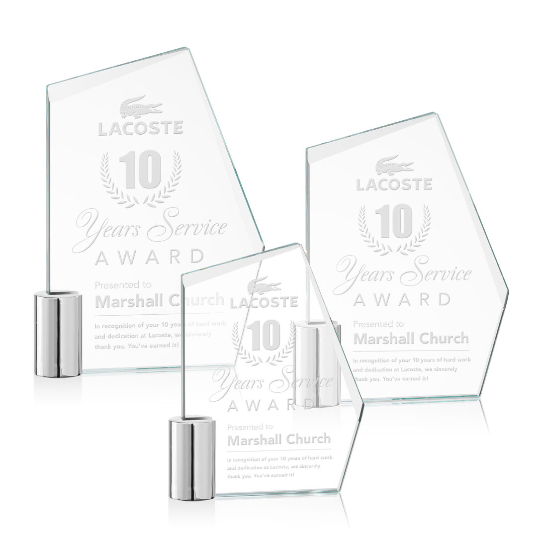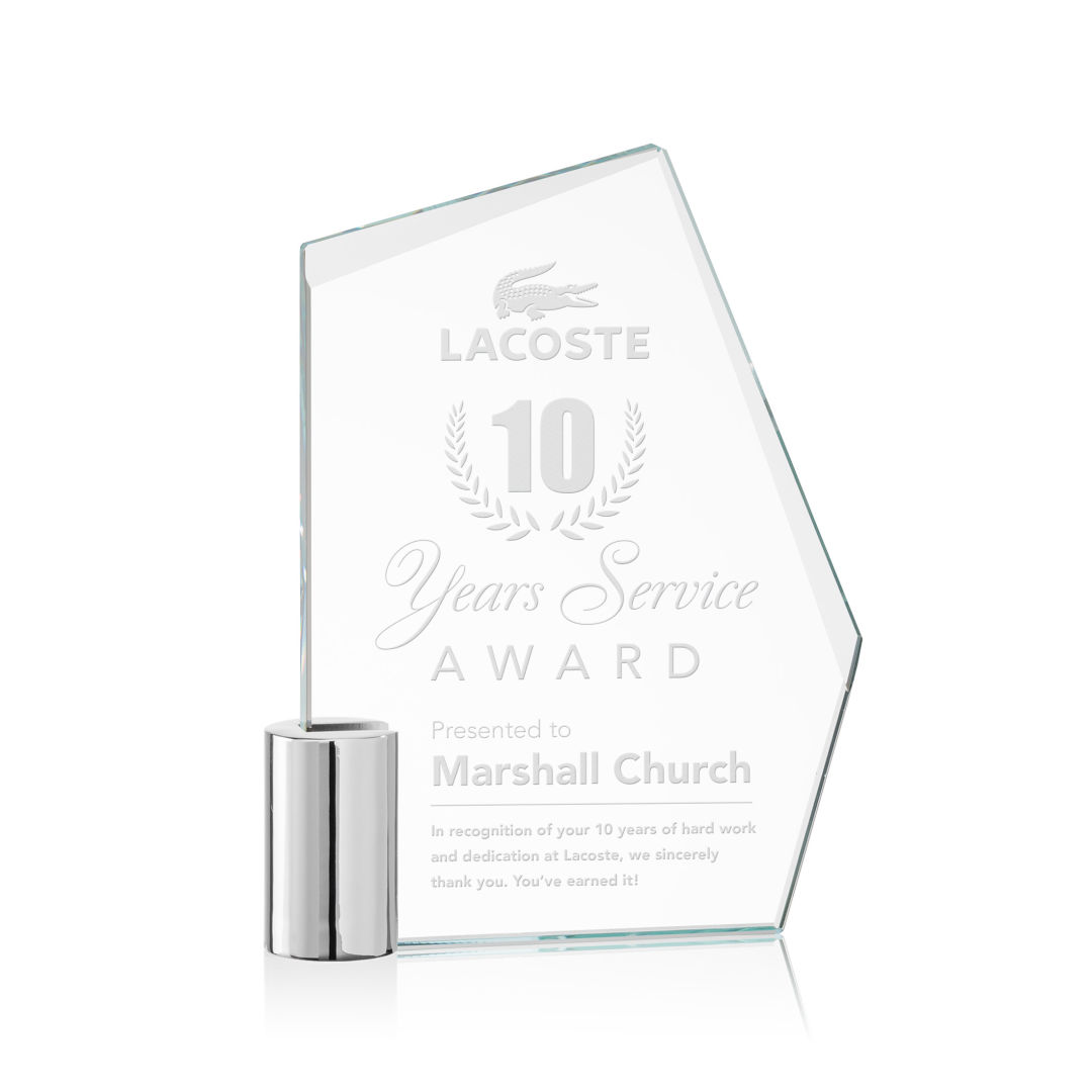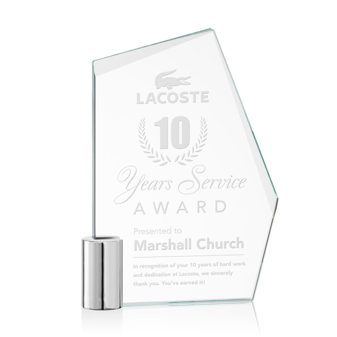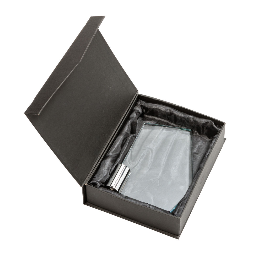 Recognize exceptional achievements with the Oklahoma Award! This unique Starfire Crystal award features interchanging bevels at the top of the award and is supported by chrome cylinder. Packaged in a black satin-lined presentation gift box. 4.875″ W x 6.0″ H