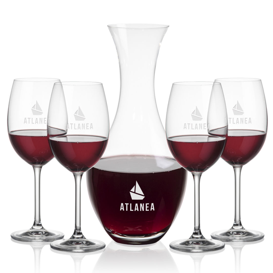 The 50oz Oldham Carafe is combined with your choice of 2 or 4 wine glasses to create the perfect gift for any discerning wine connoisseur. This elegant set will enhance the pleasure of savoring your favorite spirits and add a touch of grace to your drinking experience.