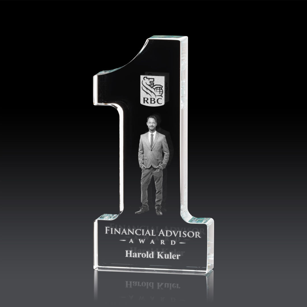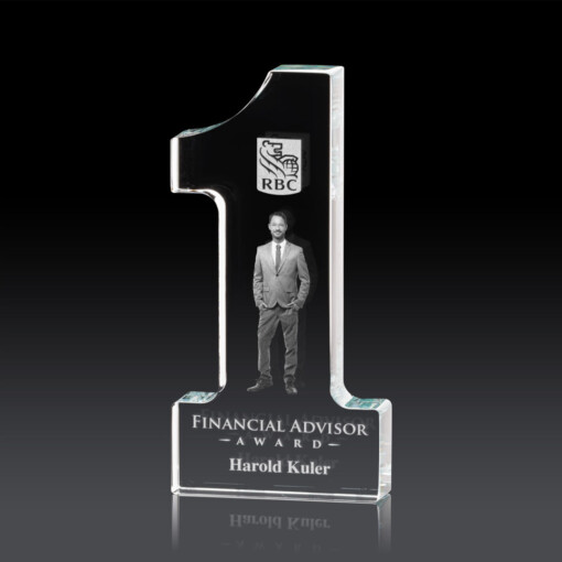 Bring your message to life with Beautiful 3 Dimensional etching inside this flawless optical crystal freestanding “1” Paperweight. This highly polished award is perfect to recognize winners, top performers, and first-place holders of all kinds.Our 3D Pop process creates a simulated 3D effect from a 2D photo. For a true 3D engraving, please provide a 3D engraving file (.obj), or we can redraw it for a fee. 2.5″ W x 5.0″ H x 0.75″ D