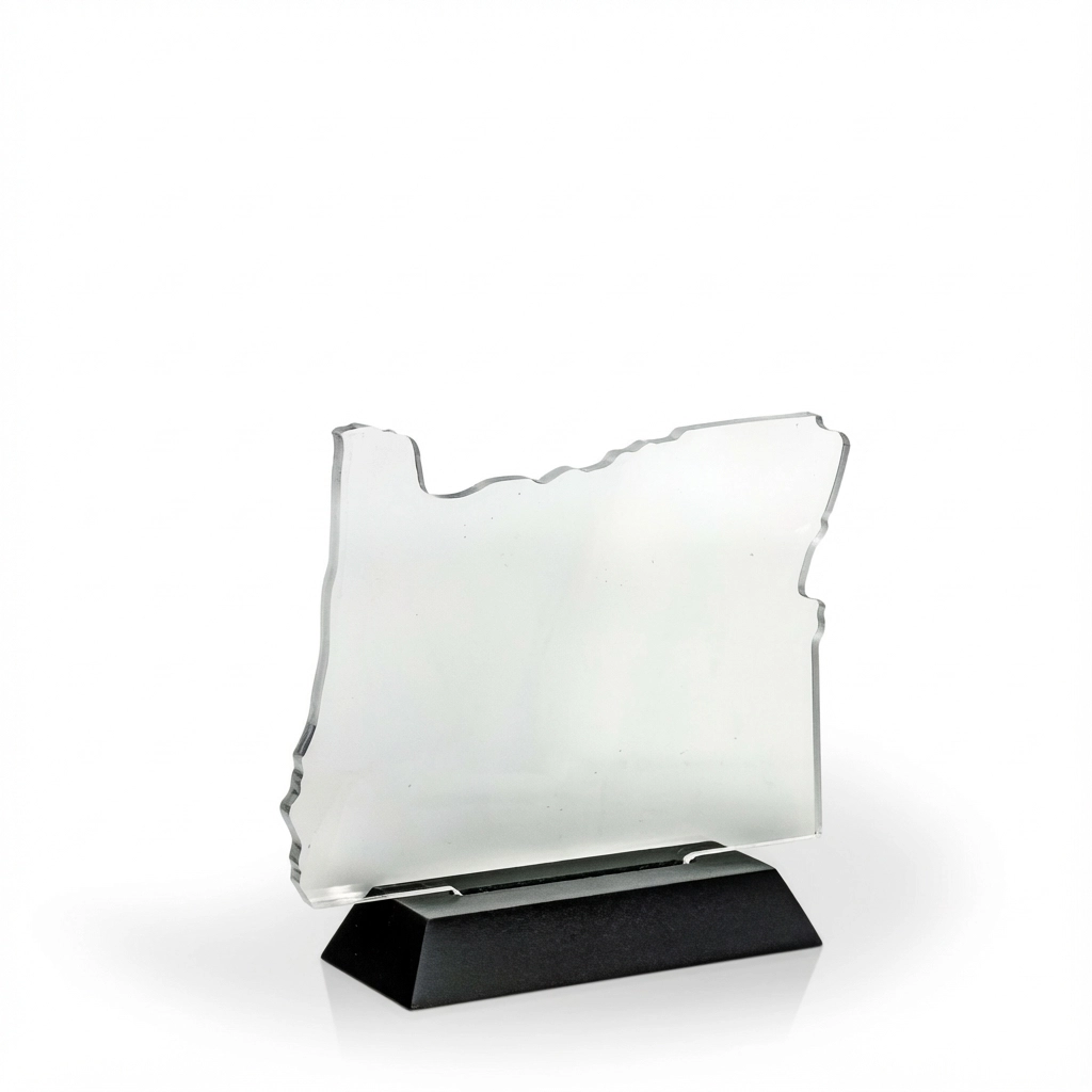 An attractive and affordable award option, our acrylic cutout awards are made in the USA with 1/4″ clear acrylic and a black, beveled wood base. These budget-friendly awards require minor assembly. The acrylic pop-in and wood base are packaged together, un-attached, in a slim-line white tri-fold box. 5.9″ H x 7″ W x 2″ D