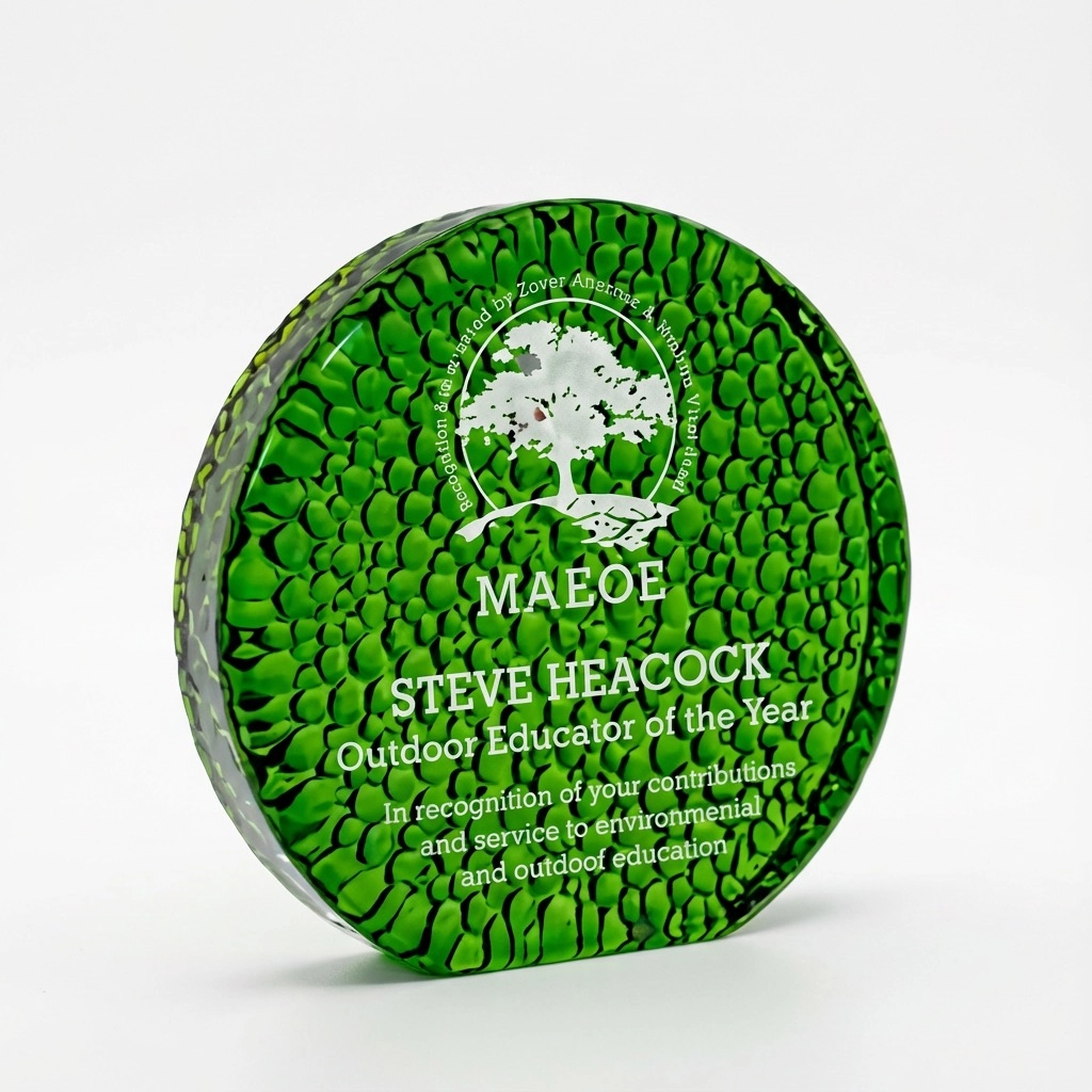 Recognize outstanding achievements with the captivating Oz Raindrop Emerald Recycled Glass Award. This exquisite 6-inch award is more than just a trophy; it’s a testament to both accomplishment and sustainability. Each piece is meticulously crafted from recycled glass, giving it a unique character and a brilliant emerald color that catches the light beautifully.