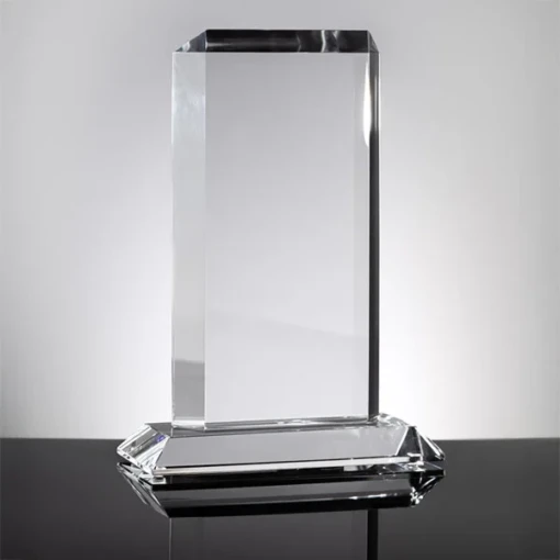 The Phoenix Tower Award features opposing steep bevels. This large vertical award has a very large engraving area and is an excellent choice for large logos and also when plenty of text is required. It is manufactured from premium quality K9 Clear Optic Crystal and comes packaged in a premium quality black presentation box. Available in two sizes. 5″ L x 3″ W x 8″ H