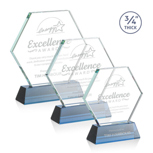 The Pickering Starfire Crystal Award features a brilliant 0.75″ thick hexagon mounted on a tall tapered Clear or Colored Optical Base to display your remarkable achievement proudly and prominently. Second Position Etch & Colorfill Optional. 7.0″ W x 7.5″ H x 2.0″ D