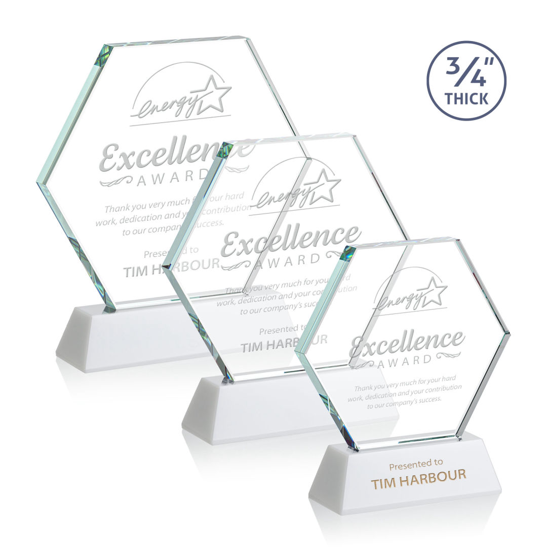 The Pickering Starfire Crystal Award features a brilliant 0.75″ thick hexagon mounted on a tall tapered Clear or Colored Optical Base to display your remarkable achievement proudly and prominently. Second Position Etch & Colorfill Optional. 7.0″ W x 7.5″ H x 2.0″ D