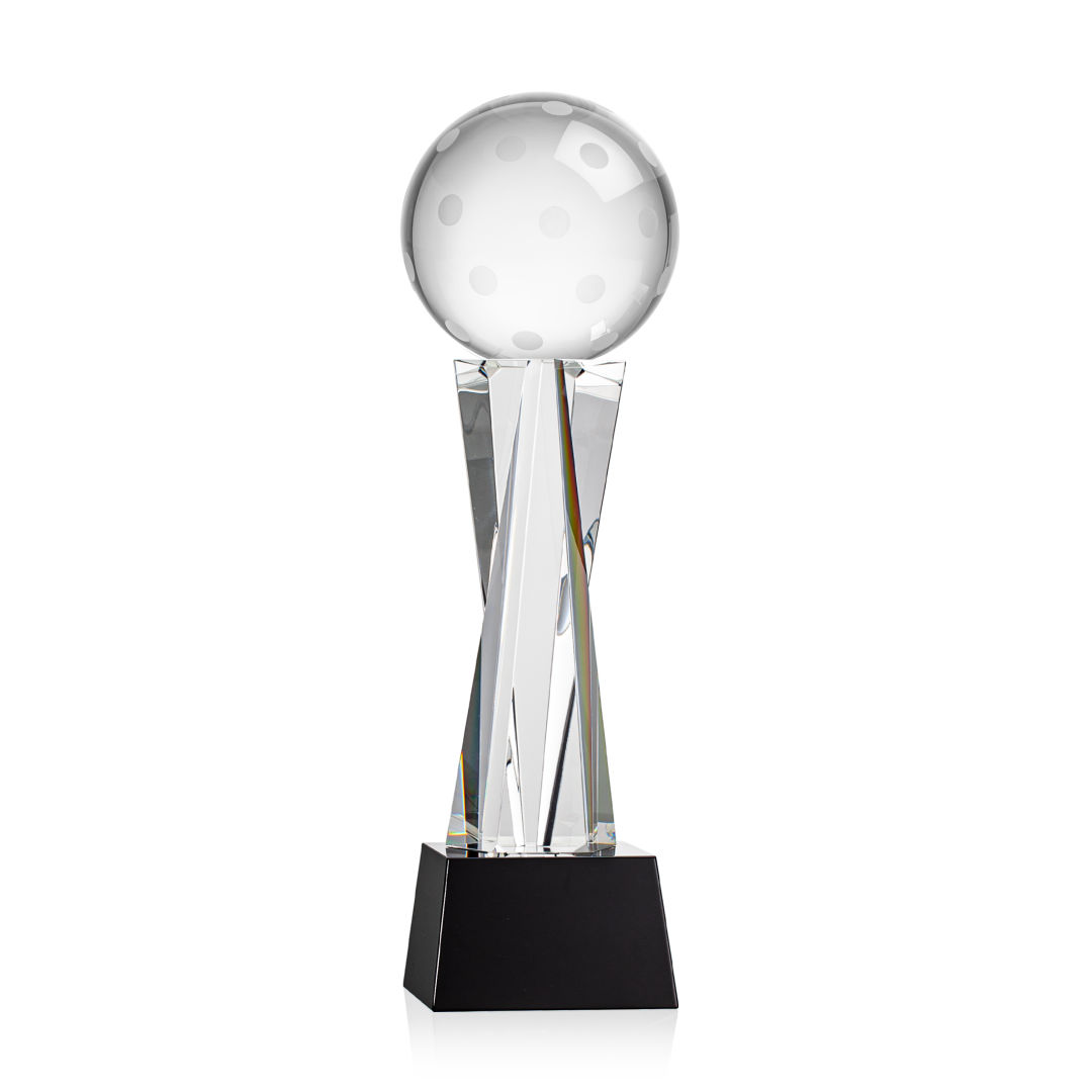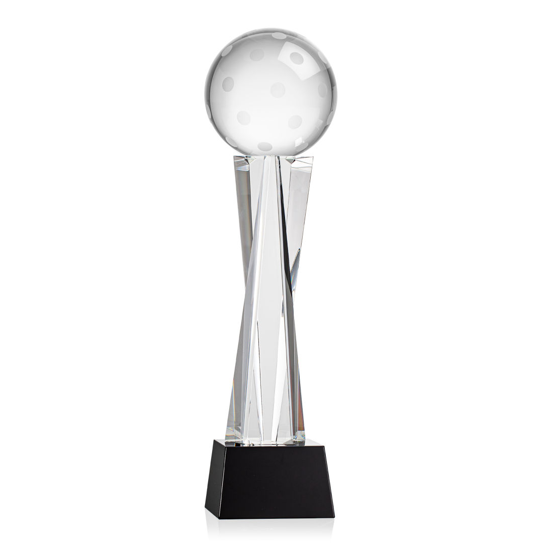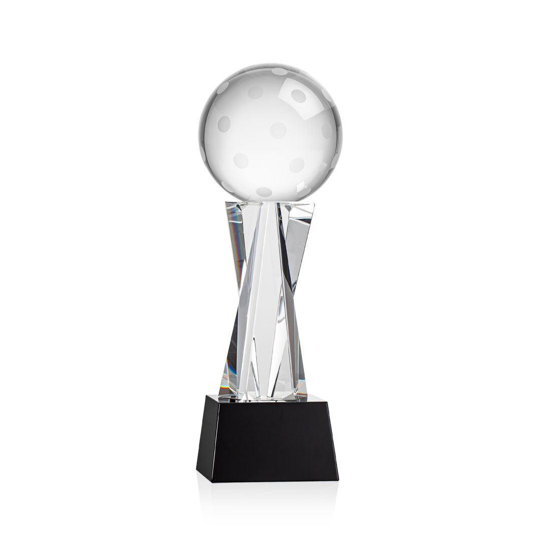 Our Pickleball Award is a tribute to the athleticism and dedication of pickleball enthusiasts. At the heart of this masterpiece is a flawlessly rendered Optical Crystal Pickleball that captures and refracts light in a captivating display. Mounted on a complimenting Optical base for personalization with a Logo or Name. An outstanding award, gift, or keepsake for pickleball tournaments, competitions, or special occasions. 4.0″ W x 10.875″ H x 4.0″ D