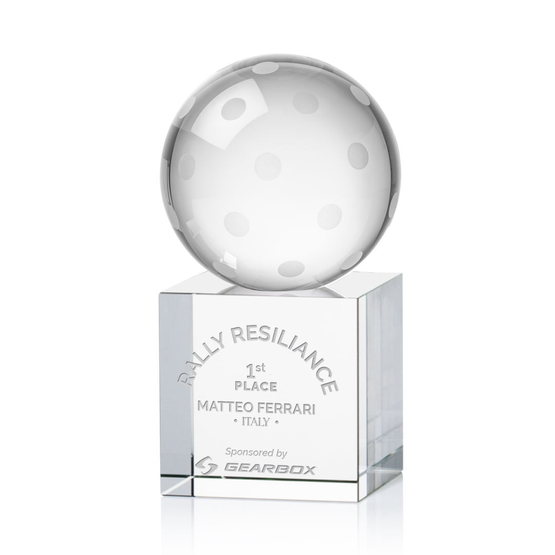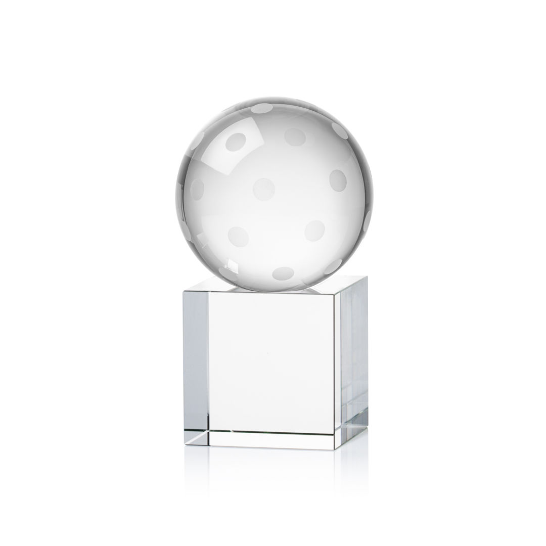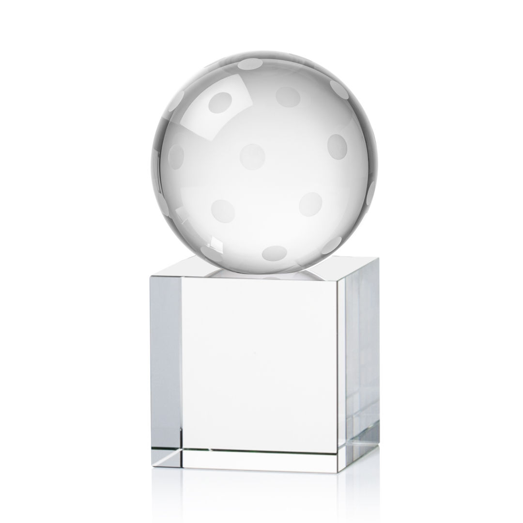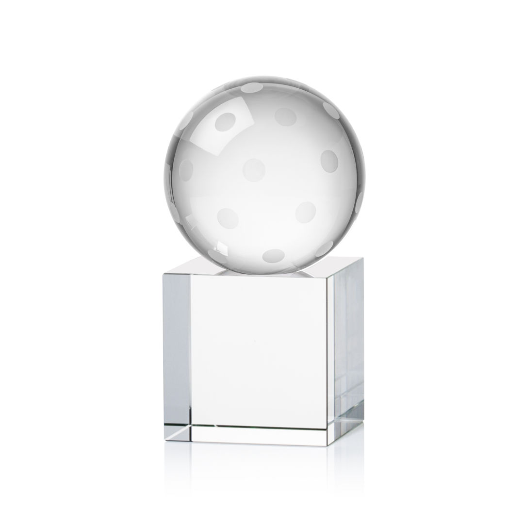 Our Pickleball Award is a tribute to the athleticism and dedication of pickleball enthusiasts. At the heart of this masterpiece is a flawlessly rendered Optical Crystal Pickleball that captures and refracts light in a captivating display. Mounted on a complimenting Optical base for personalization with a Logo or Name. An outstanding award, gift, or keepsake for pickleball tournaments, competitions, or special occasions. 2.375″ W x 4.25″ H x 2.375″ D