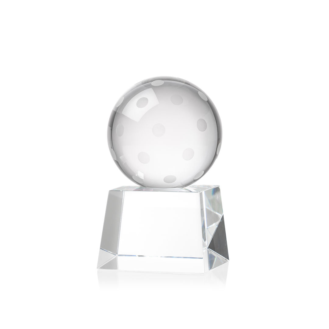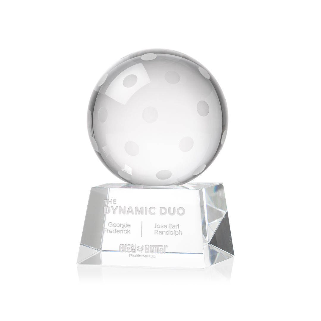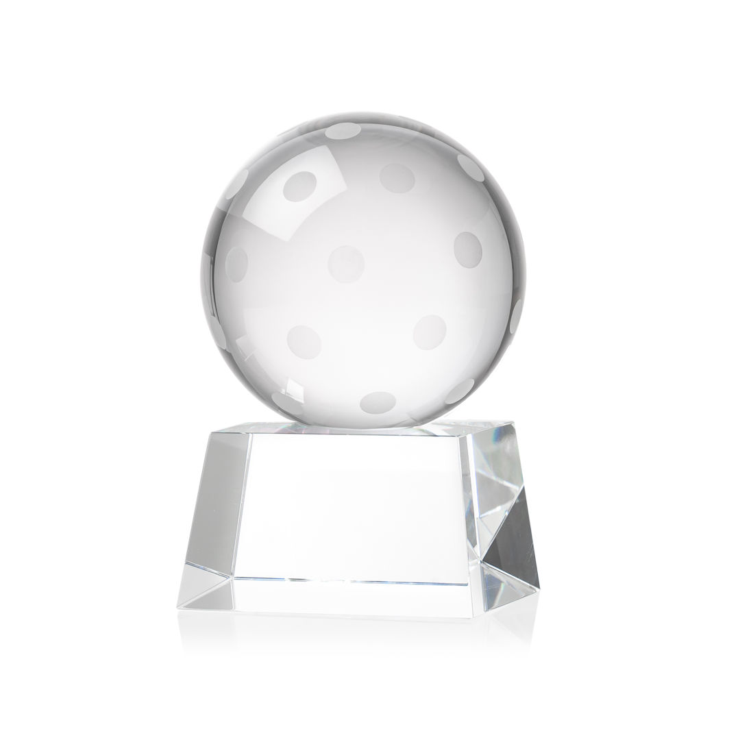 Our Pickleball Award is a tribute to the athleticism and dedication of pickleball enthusiasts. At the heart of this masterpiece is a flawlessly rendered Optical Crystal Pickleball that captures and refracts light in a captivating display. Mounted on a complimenting Optical base for personalization with a Logo or Name. An outstanding award, gift, or keepsake for pickleball tournaments, competitions, or special occasions. 2.5″ W x 4.25″ H x 2.5″ D