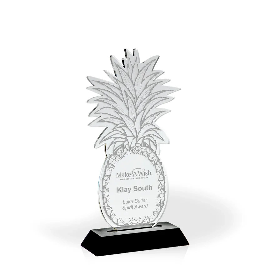 An attractive and affordable award option, our acrylic cutout awards are made in the USA with 1/4″ clear acrylic and a black, beveled wood base. These budget-friendly awards require minor assembly. The acrylic pop-in and wood base are packaged together, un-attached, in a slim-line white tri-fold box. 8.75″ H x 4.5″ W x 2″ D