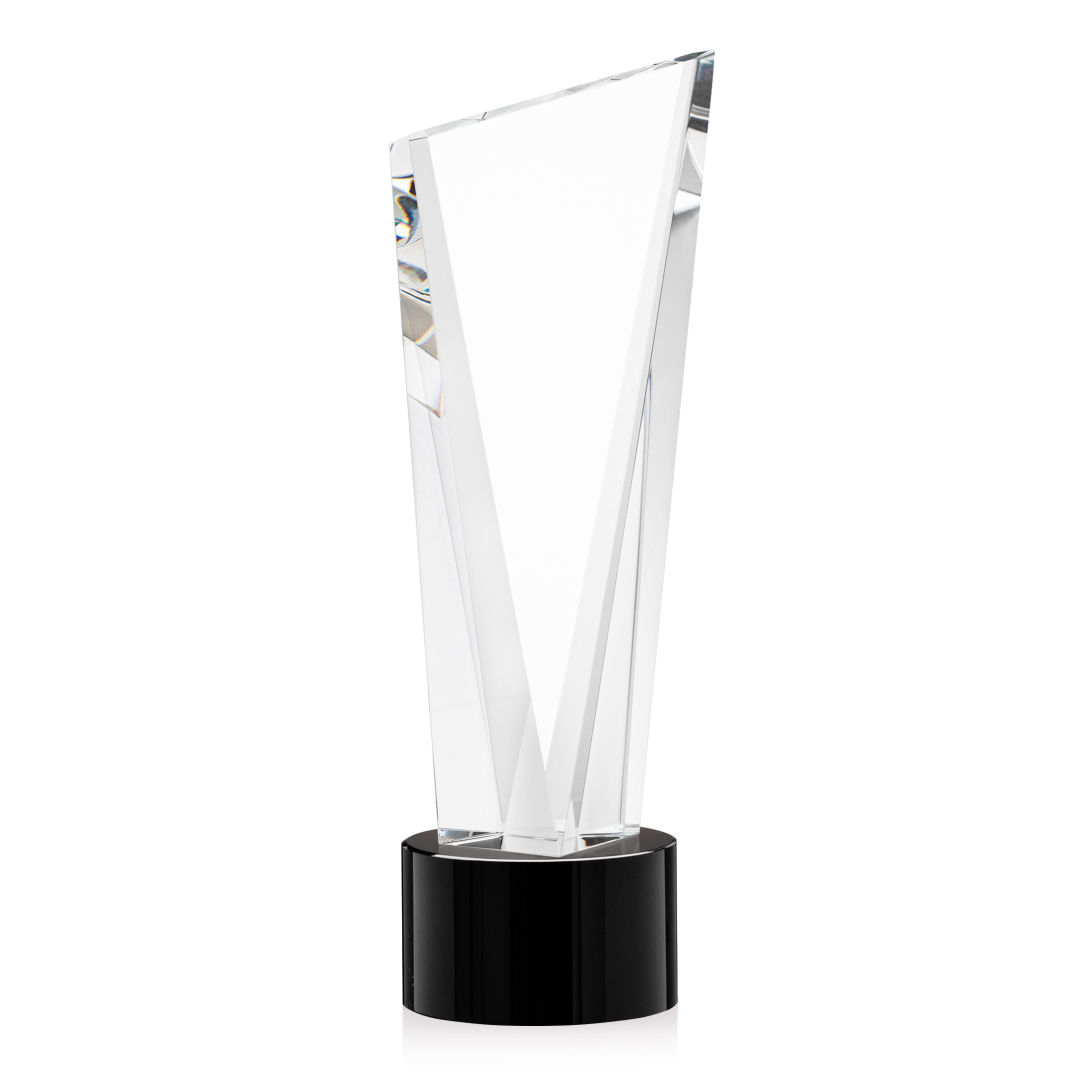 The magnificently angular design of the Optical Crystal Plymouth Award features a beautiful slanted top and is mounted on your choice of complementing Optical Crystal base. This accolade is the presentation piece deserving of an outstanding achiever. Second-position decoration on base optional. 4.125″ W x 9.5″ H x 3.5″ D