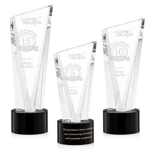 The magnificently angular design of the Optical Crystal Plymouth Award features a beautiful slanted top and is mounted on your choice of complementing Optical Crystal base. This accolade is the presentation piece deserving of an outstanding achiever. Second-position decoration on base optional. 4.125″ W x 9.5″ H x 3.5″ D