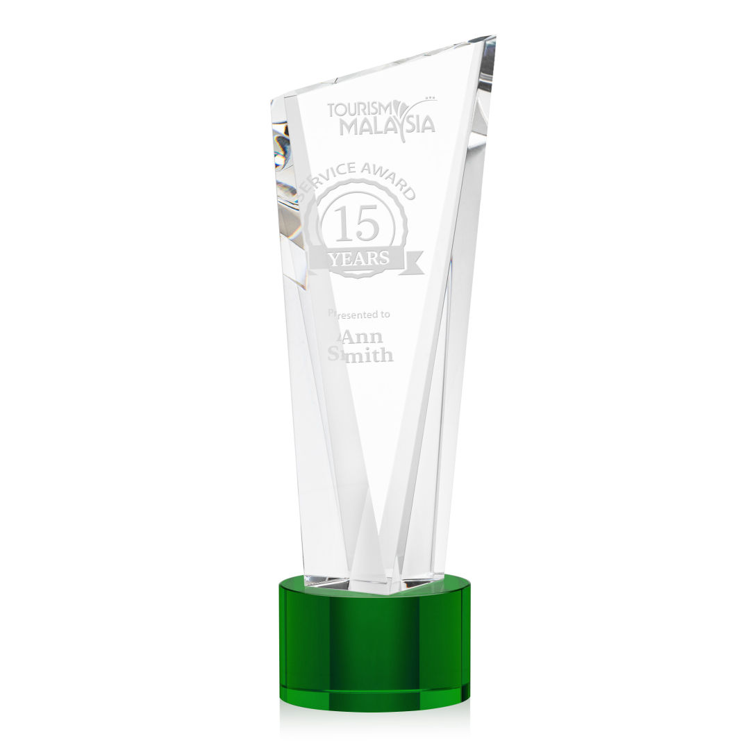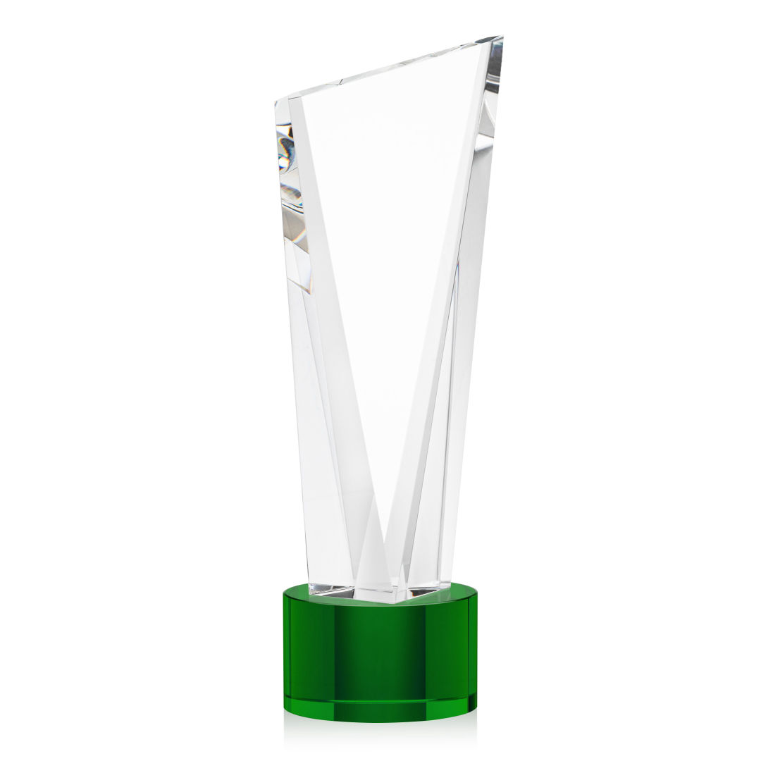 The magnificently angular design of the Optical Crystal Plymouth Award features a beautiful slanted top and is mounted on your choice of complementing Optical Crystal base. This accolade is the presentation piece deserving of an outstanding achiever. Second-position decoration on base optional. 4.125″ W x 9.5″ H x 3.5″ D