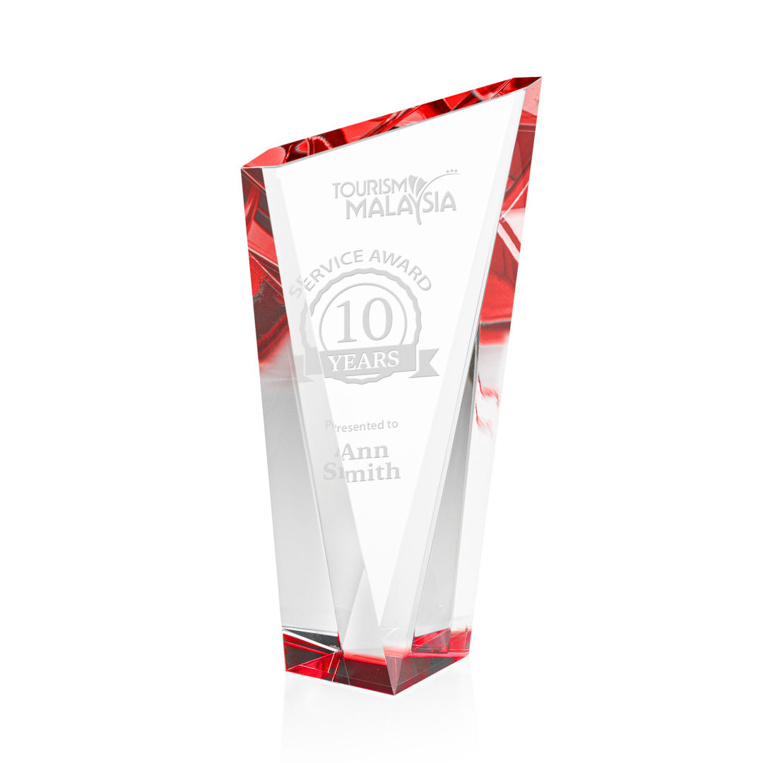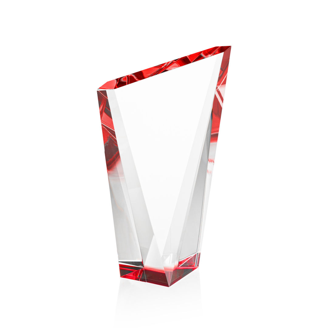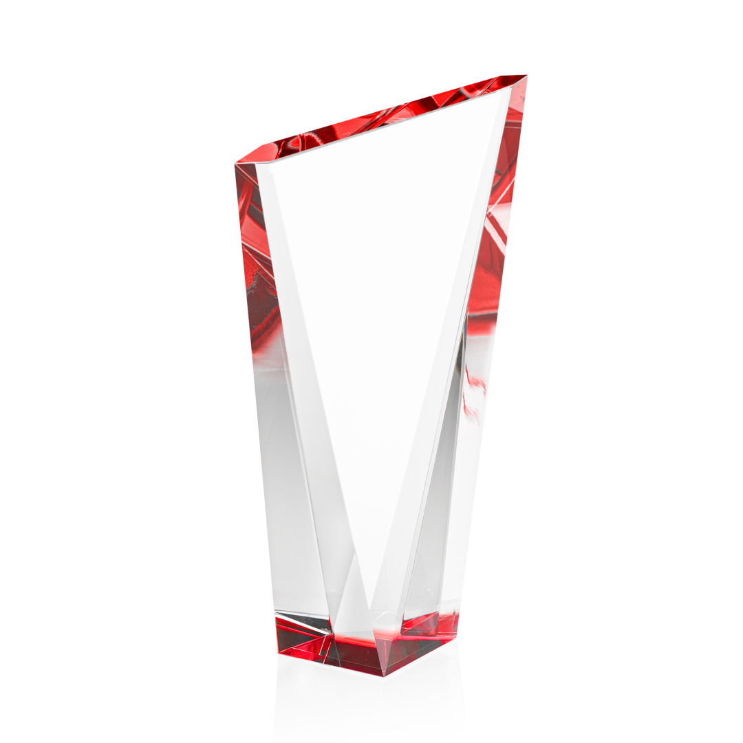 The magnificently angular design of the Plymouth Award features a beautiful, colored base that showcases a dazzling display of ruby red reflections through its slanted top. This freestanding accolade is the presentation piece deserving of an outstanding achiever. 4.125″ W x 7.5″ H x 2.0″ D