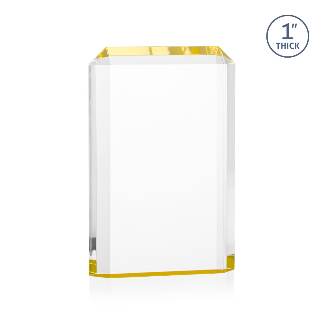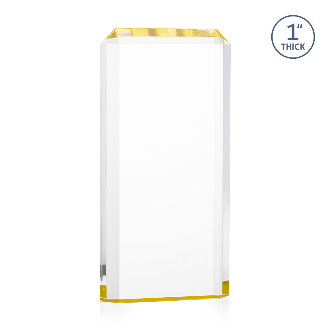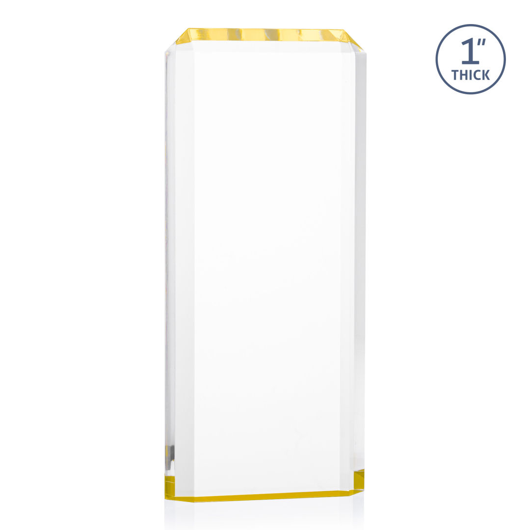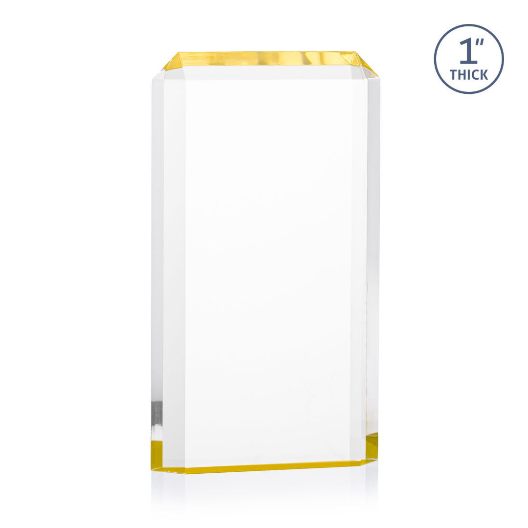 The freestanding acrylic Powell VividPrint™ Award is a striking tribute, featuring a choice of reflective sapphire, gold, or ruby bottoms that beautifully highlight each bevel with vibrant color. This award’s sleek design and brilliant hues make it an eye-catching piece for honoring exceptional achievements. Celebrate excellence with the Powell Award, where elegance meets brilliance. Let your message POP with full color VividPrint™! 4.0″ W x 6.0″ H x 1.0″ D