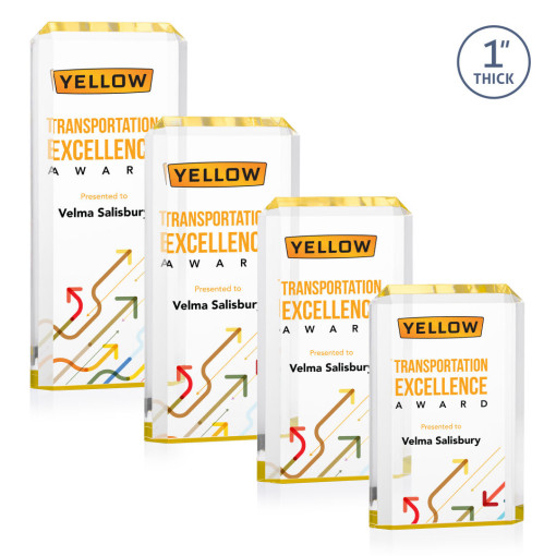 The freestanding acrylic Powell VividPrint™ Award is a striking tribute, featuring a choice of reflective sapphire, gold, or ruby bottoms that beautifully highlight each bevel with vibrant color. This award’s sleek design and brilliant hues make it an eye-catching piece for honoring exceptional achievements. Celebrate excellence with the Powell Award, where elegance meets brilliance. Let your message POP with full color VividPrint™! 4.0″ W x 6.0″ H x 1.0″ D
