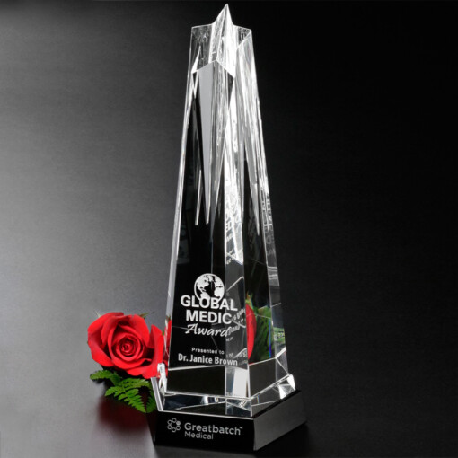 The typical turnaround time for in stock awards is 2–3 weeks, including production and shipping. For rush orders, this timeline can be shortened to 3–5 business days. Contact us early to ensure your crystal awards and engraved trophies arrive on time.