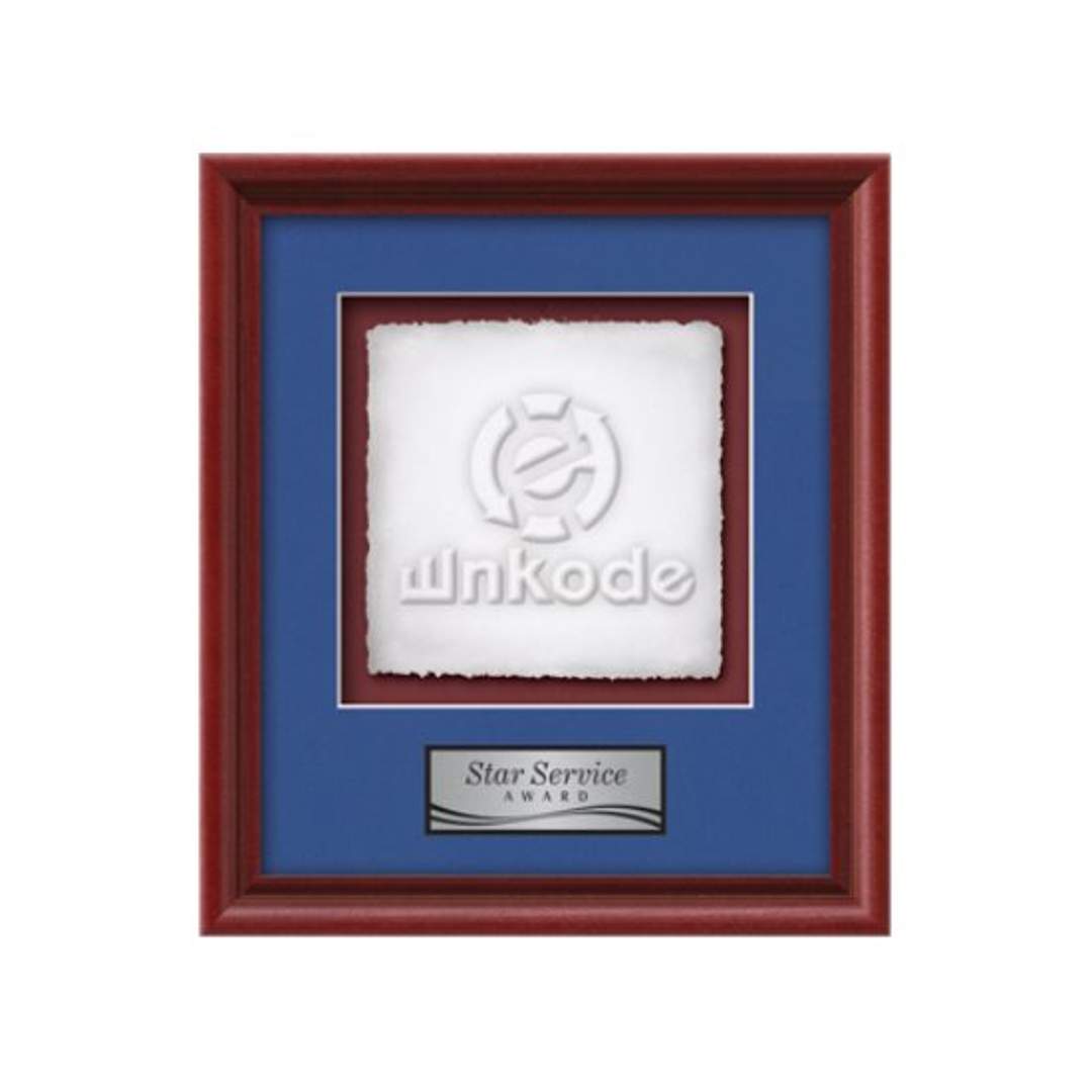 Waterleaf Studios special VividPrintâ„¢ process precisely replicates your full color artwork onto handcrafted artisan paper. Combining the vintage, old world look and feel of handcrafted paper with the vibrant VividPrintâ„¢ process creates a truly unique and dynamic statement of achievement. Framed with our museum quality Baron molding, your choice of 2 standard mattes and a personalization plate. 11.0″ W x 11.0″ H