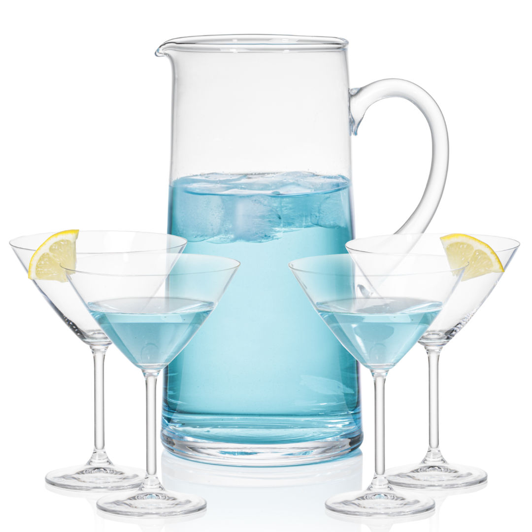 This charming Lead-Free Crystalline Rexdale Pitcher set includes 2 or 4 Coleford Cocktail glasses and ships in a satin-lined presentation gift box. A great gift idea for serving a refreshing cold drink or your favorite cocktails.