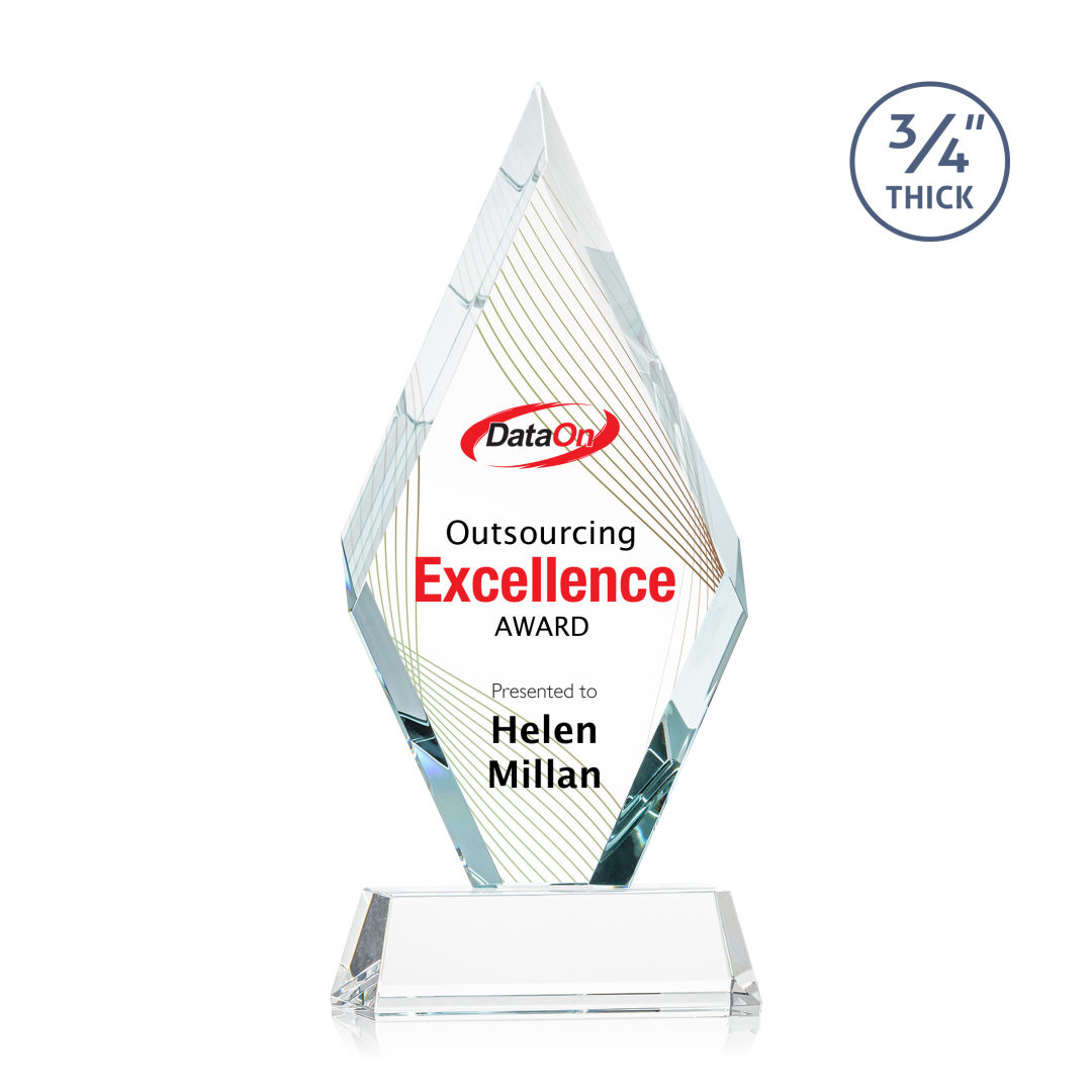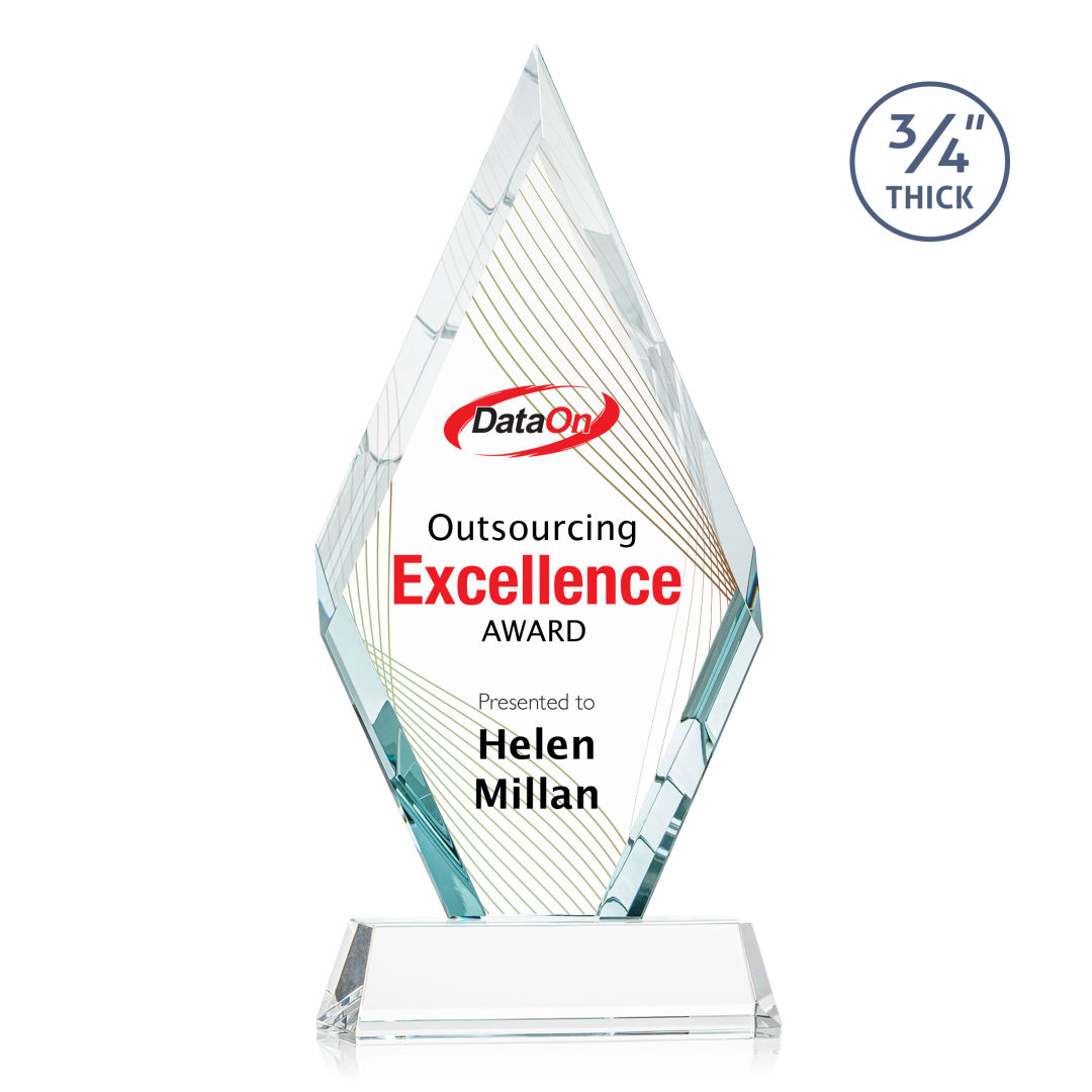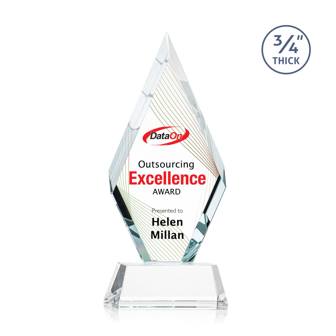 With beautiful interchanging beveled edges, the Starfire Crystal Richmond VividPrint™ Award is an elegant recognition piece for any occasion. Mounted on a tall tapered crystal base in your choice of 8 distinct colors. Second position imprint on base is optional. 4.0″ W x 9.5″ H x 2.0″ D