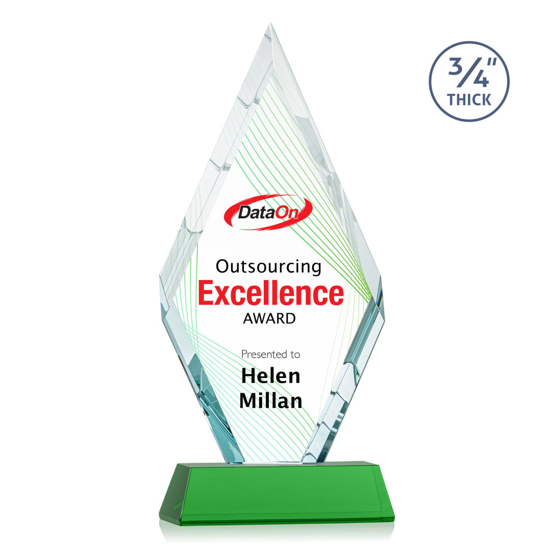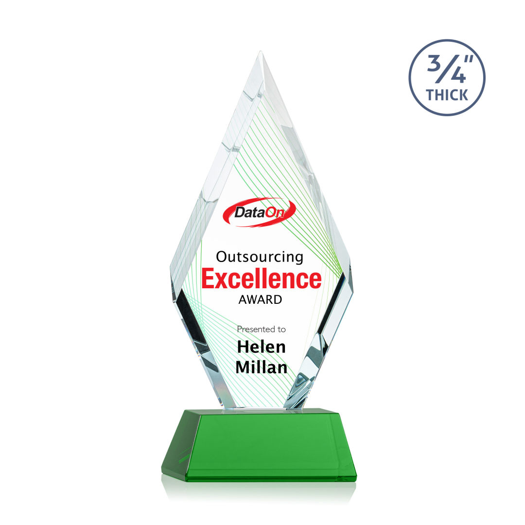 With beautiful interchanging beveled edges, the Starfire Crystal Richmond VividPrint™ Award is an elegant recognition piece for any occasion. Mounted on a tall tapered crystal base in your choice of 8 distinct colors. Second position imprint on base is optional. 4.0″ W x 9.5″ H x 2.0″ D
