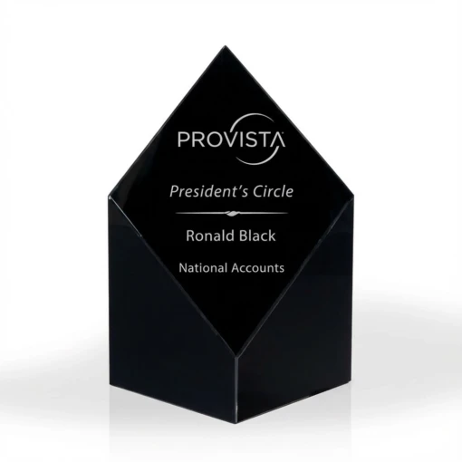 The Rio Black Diamond Crystal Award is made of gorgeous black crystal. It is a classic award shape and makes an excellent option when you have a wide variety of individuals to recognize in your award program. There are 3 sizes in the Rio Black Diamond Award line: 5″ tall, 7″ tall and 9″ tall, making this a great award to use if you want to create a category with multiple sizes for varying levels of recognition. It is very popular for sales awards, vendor awards, management awards, and a variety of department and staff awards. 5″ H x 3.75″ W x 2.75″ D