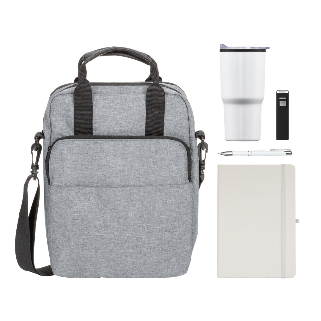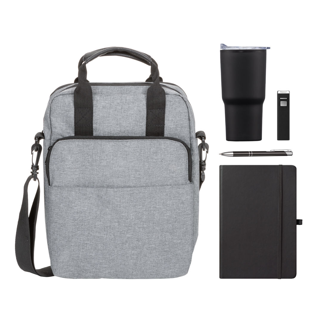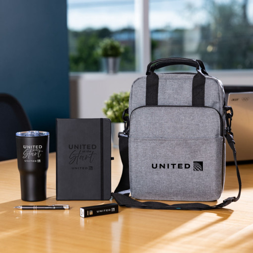 The Road Warrior Onboarding Set is built for employees always on the move. It features the sleek Eccolo® Cool Journal – Medium, a reliable Clicker Pen, a durable Crossbody Laptop Bag for easy travel, a compact Portable Power Bank to stay charged, and a 20oz Stainless Steel Travel Tumbler for drinks on the go. Perfect for sales teams, consultants, and remote professionals, this set keeps your team powered, organized, and ready to tackle the day wherever work takes them.