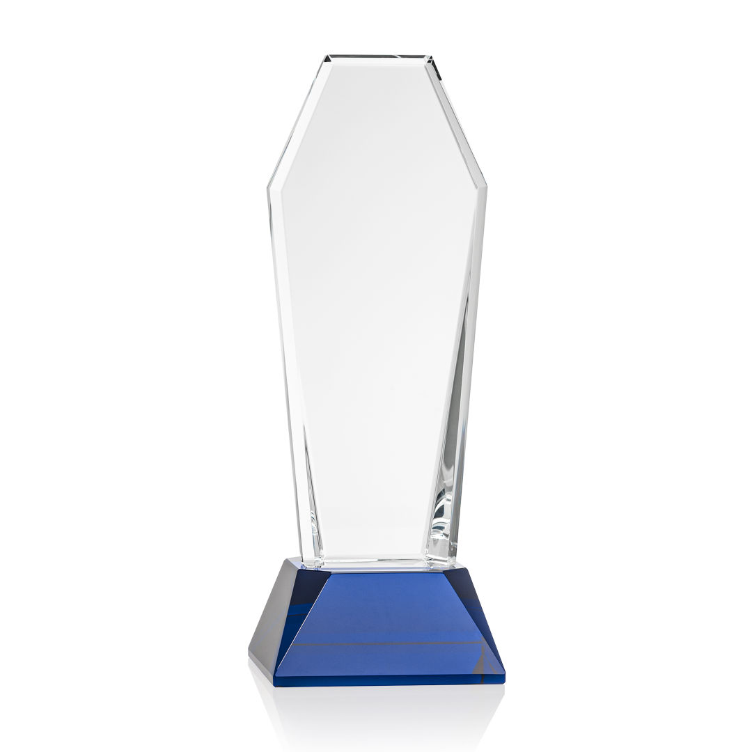 The spectacular Romford is a tall statuesque Optical Crystal award with double sided beveled edges. Mounted on an Optical Crystal Sapphire base and includes full-color VividPrint™. Second position imprint optional. 3.0″ W x 9.0″ H x 3.25″ D